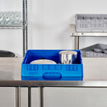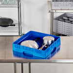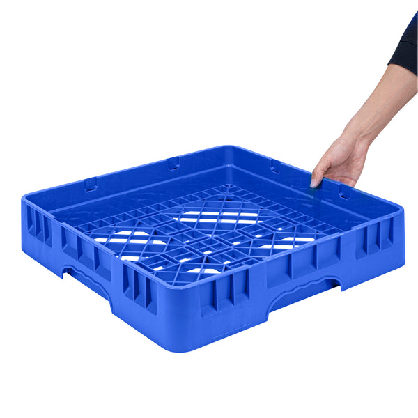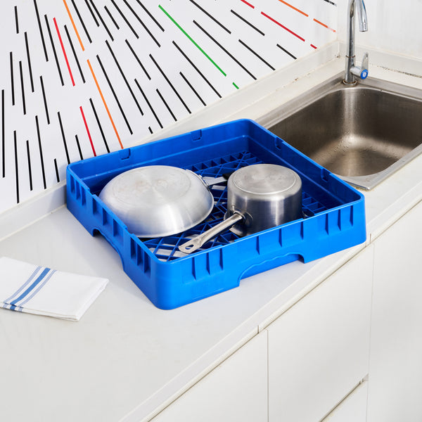 Simplify your cleaning tasks and storage setup with our Clean Tek Professional Blue Base Rack. Constructed sturdily, this rack minimize breakage, offering long-lasting performance during cleaning and storage. The closed outer walls of this flatware base rack keep out contaminants and preserve quality, ensuring your flatware remains pristine. With an open interior, this blue base rack allows for optimal airflow, promoting quick drying and thorough rinsing of dishes. Rounded handles on all four sides provide a secure grip, making the heavy-duty dish rack easy to handle and maneuver. Measuring 19.69 inches in length by 19.69 inches in width by 3.98 inches in height, this rack base fits seamlessly into your workflow. Sold in a 1 count box.