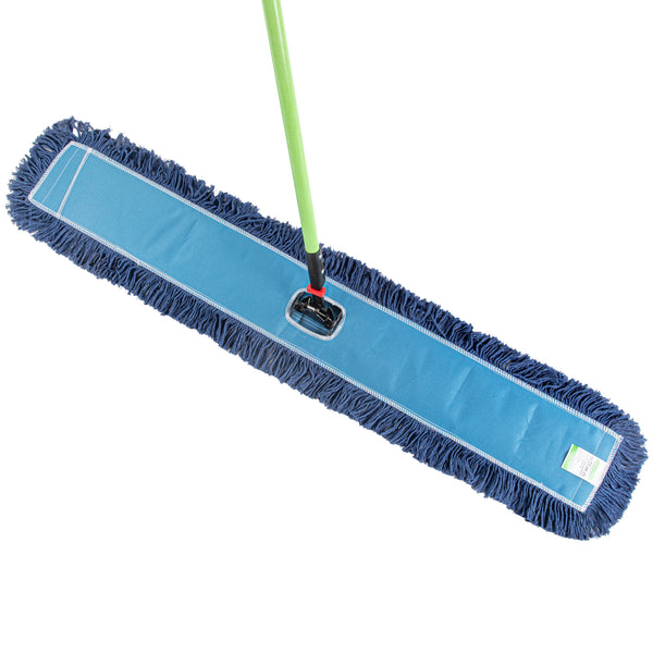 BLUE COTTON-POLY BLEND DUST / DRY MOP - WITH 64" HANDLE