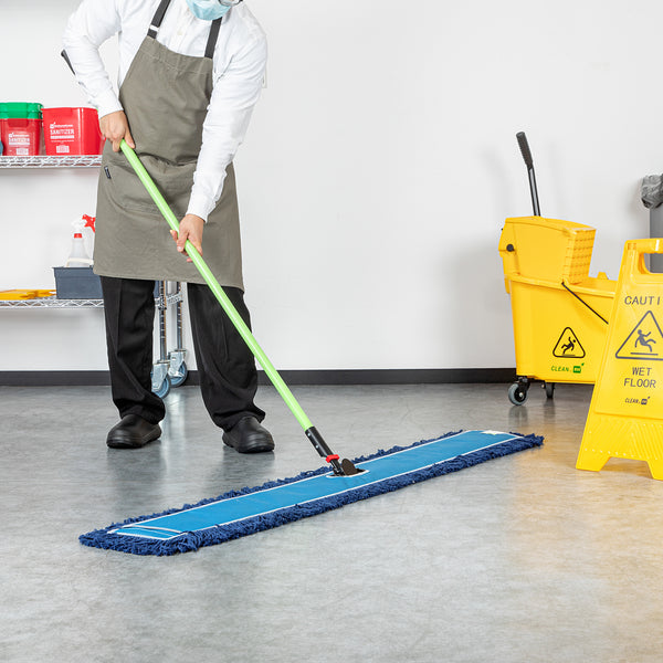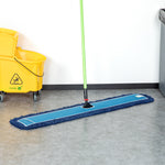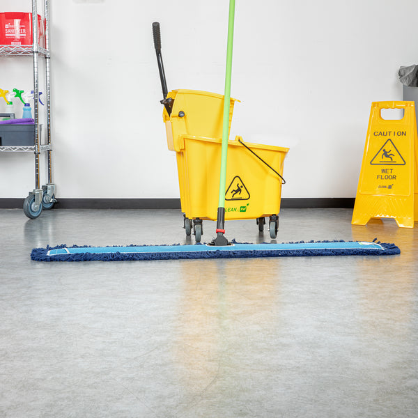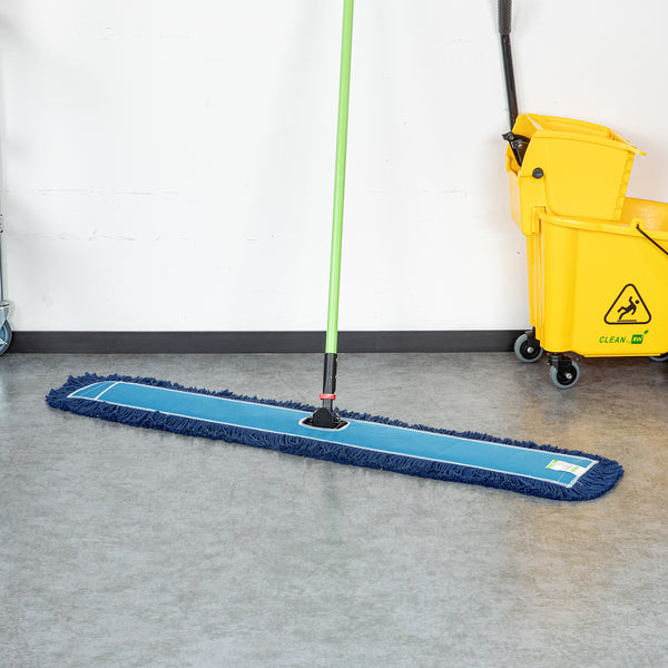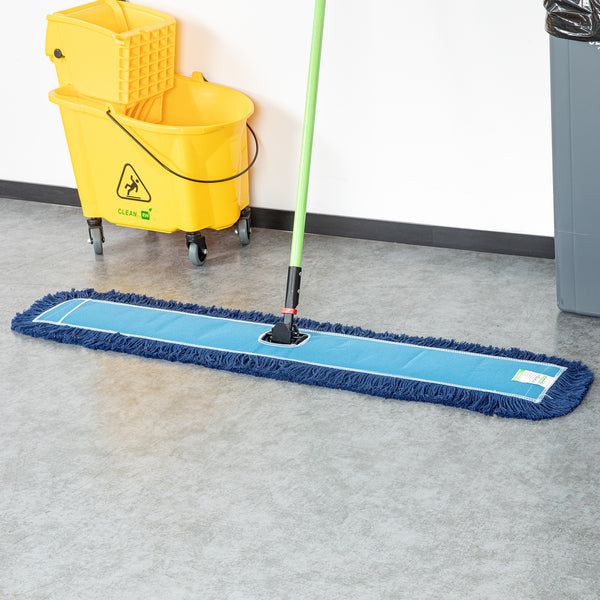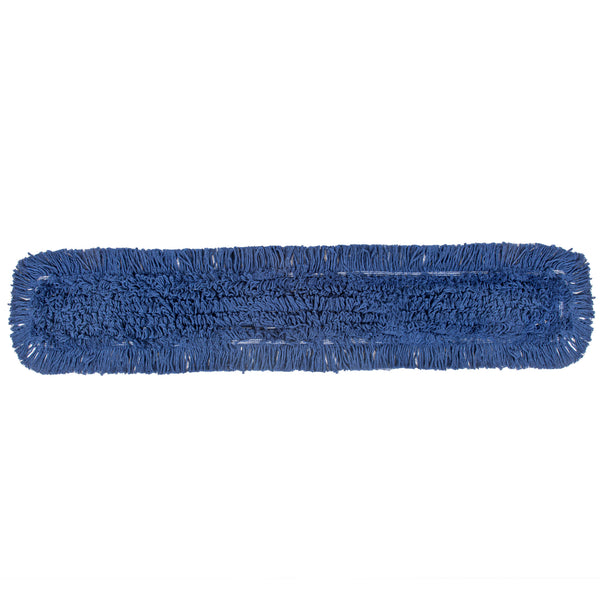 Experience superior floor cleaning with our Clean Tek Professional Blue Cotton-Poly Dust Mop Head. Pair this dry mop head with our collection of matching Clean Tek Professional mop frames and handles for an all-in-one cleaning solution that ensures an excellent cleaning experience. Made from a cotton-poly blend, this mop head easily whisks away and retains dust and dirt, allowing you to clean your floors faster. With a secure attachment style, this commercial dust mop head remains firmly in place during use. Additionally, this wide dust mop head is machine washable and reusable, providing easy maintenance and long-lasting performance with every clean. Measuring 48.03 inches in length by 5 inches in width, this dust mop head covers a large surface area efficiently. Sold in a 1 count box. Mop frame and handle are available and sold separately.