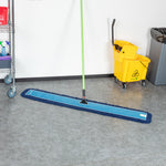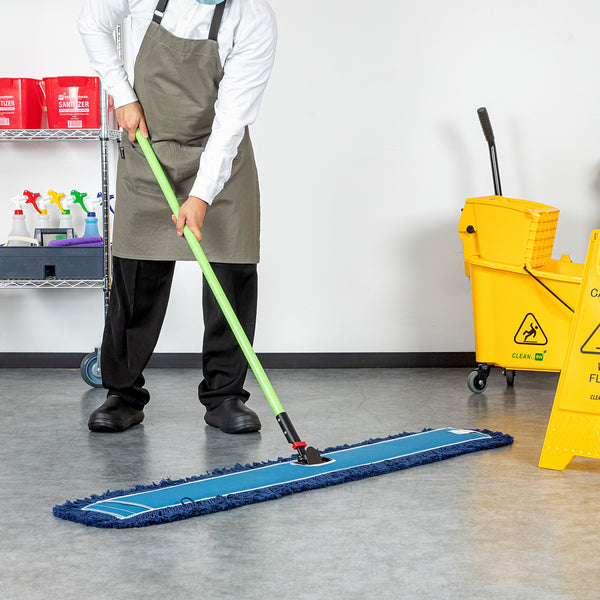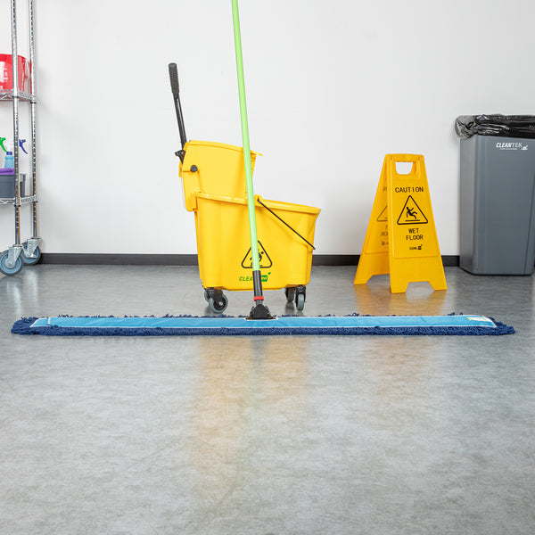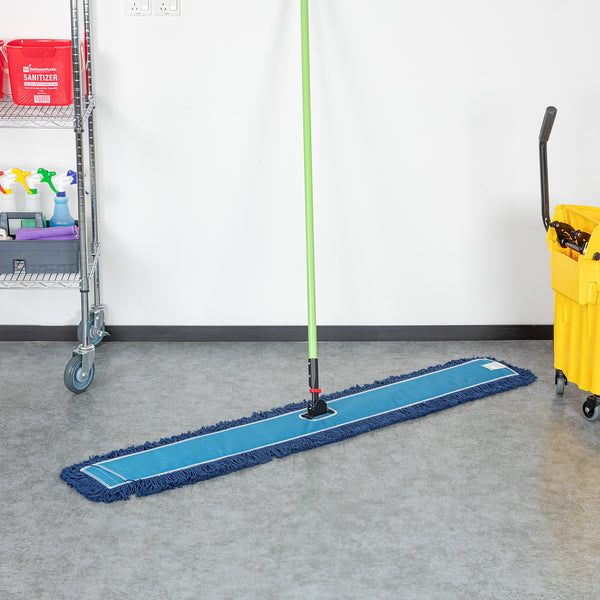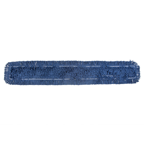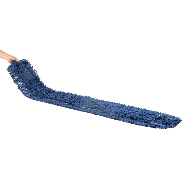 Revolutionize your cleaning routine with our Clean Tek Professional Blue Cotton-Poly Dust Mop Head. Pair this commercial dust mop head with our collection of matching Clean Tek Professional mop frames and handles for an all-in-one cleaning solution that ensures an excellent cleaning experience. Made from a durable cotton-poly blend, this mop head easily whisks away and retains dust and dirt, so you can clean your floors faster. The secure attachment style of this dry mop head ensures it stays in place while you work, providing uninterrupted cleaning. Additionally, this dust mop head is machine washable and reusable, allowing for easy maintenance and long-lasting performance with every clean. Measuring 59.84 inches in length by 5 inches in width, this wide dust mop head covers a large surface area for efficient cleaning. Sold in a 1 count box. Mop frame and handle are available and sold separately.