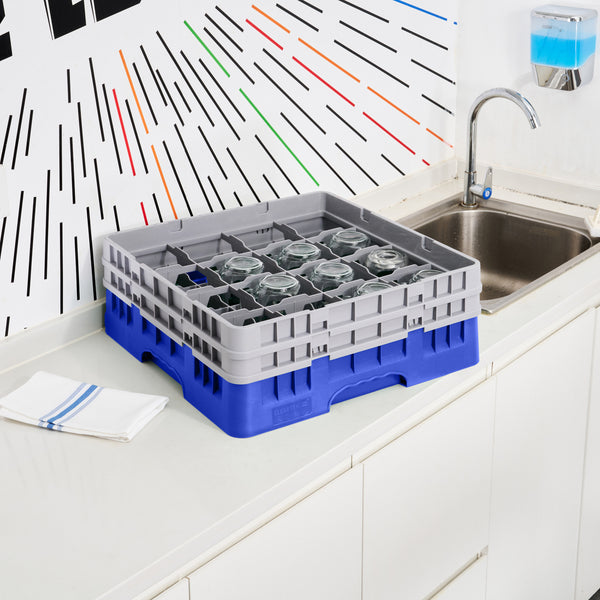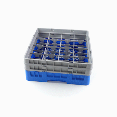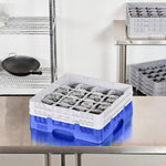 BLUE GLASS RACK - 16 COMPARTMENTS, 1 FULL AND 1 HALF DROP EXTENDER