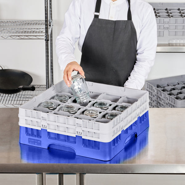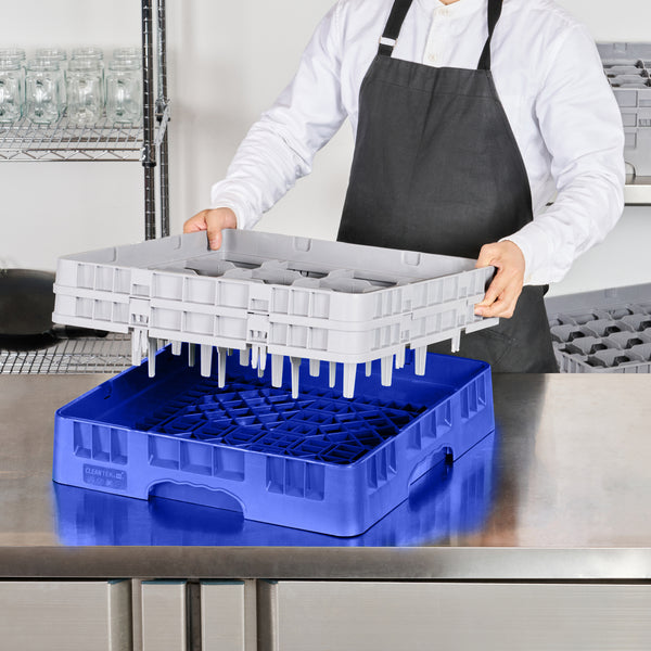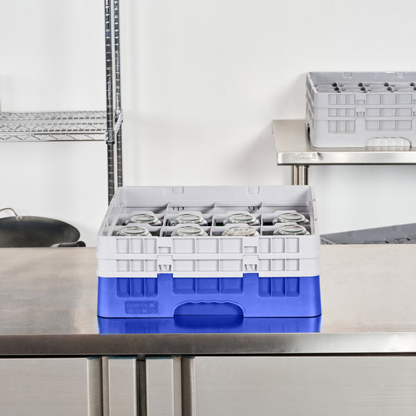 Streamline your glassware handling with ease and efficiency. The Clean Tek Professional Blue Plastic 16 Compartment Glassware Rack features open interior compartments, allowing for thorough and stress-free cleaning, making it an ideal 16 compartment glassware rack for busy restaurants. Crafted from sturdy plastic, its solid external walls safeguard delicate glassware, even amidst the hustle and bustle of professional kitchens, ensuring your glass storage and transport rack protects every piece. Measuring 19.69 inches in both length and width, this glass rack for tall glasses boasts an easy-to-handle design that speeds up service during peak dining hours, enhancing operational flow. Its vibrant blue color not only adds a pop of color to your kitchen but also aids in quick identification. Elevate your glassware management strategy with this reliable solution. Each order includes 1 Clean Tek Professional Blue Plastic 16 Compartment Glassware Rack.