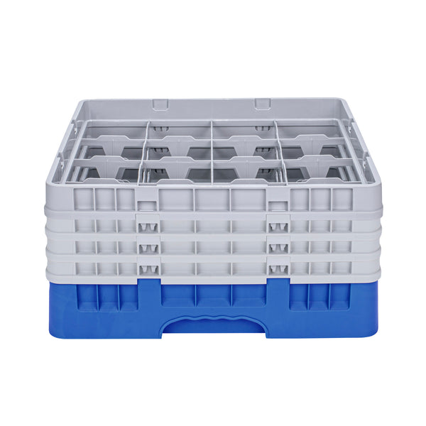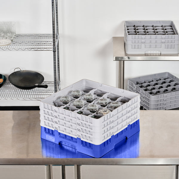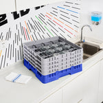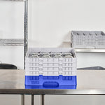 BLUE GLASS RACK - 16 COMPARTMENTS, 1 FULL AND 3 HALF DROP EXTENDERS