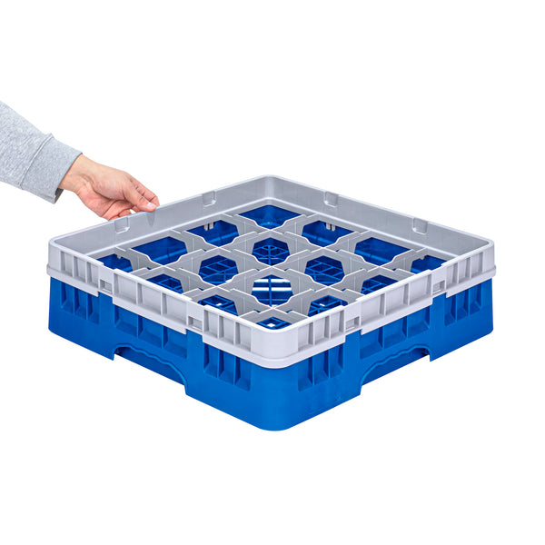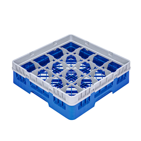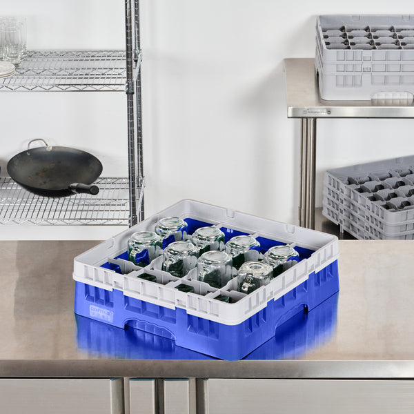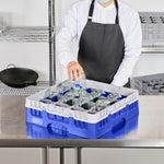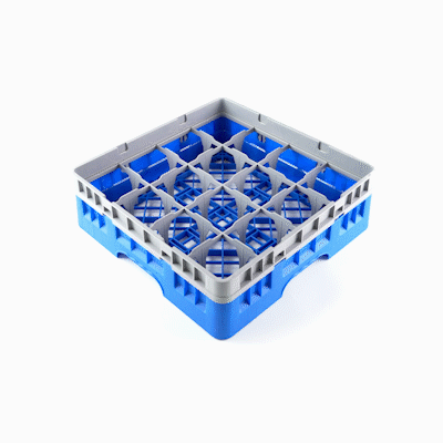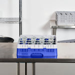 BLUE GLASS RACK - 16 COMPARTMENTS, 1 FULL DROP EXTENDER