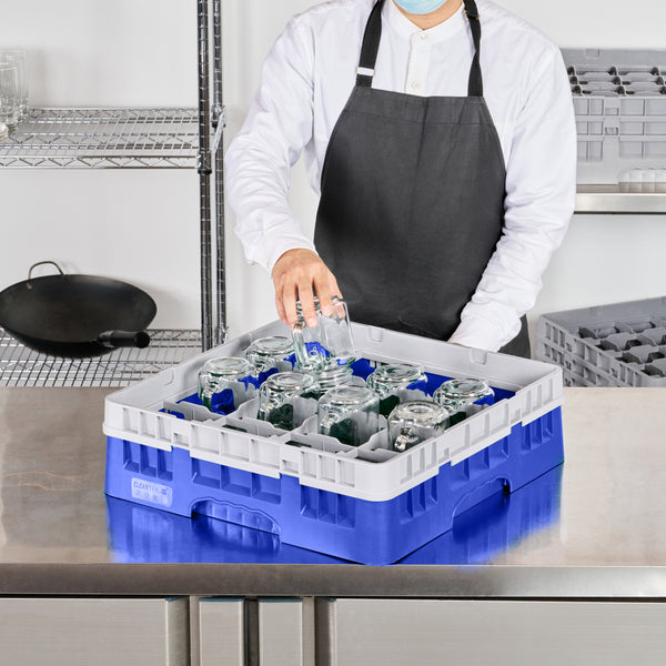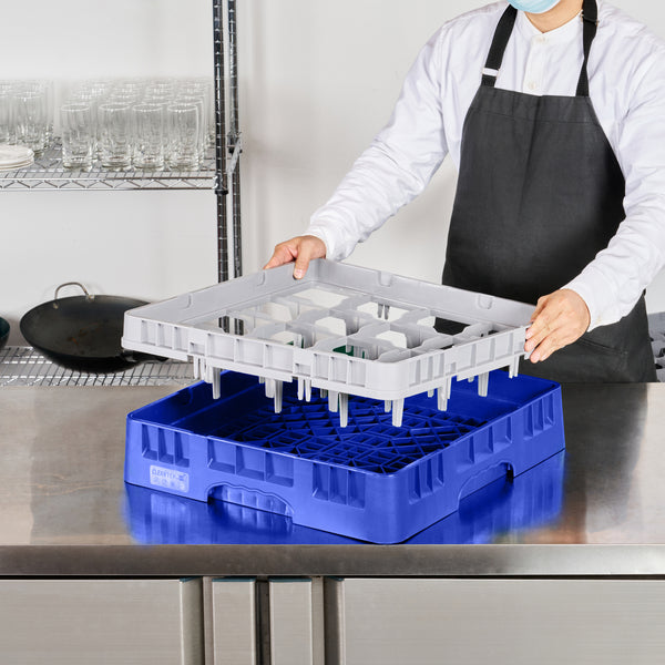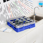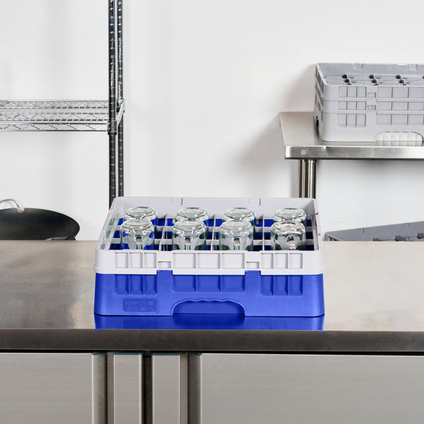 Optimize your glassware storage with our Clean Tek Professional Blue Glass Rack. This 16-compartment dishwasher rack provides ample space to keep glasses separated and secure during washing. With a full drop extender, this compartment rack accommodates taller items, making it versatile for various glass sizes. Designed for durability, this commercial glass rack is made from sturdy PP, ensuring long-lasting use in busy settings. The easy-to-handle design of this barware organizer makes transporting and loading them a breeze. Featuring open interior compartments, this rack allows for efficient water flow and thorough cleaning. Solid external walls of this rack add an extra layer of protection, averting breakage and ensuring your glassware remains intact. Measuring 19.69 inches in length by 19.69 inches in width by 5.63 inches in height, this rack fits perfectly in most commercial dishwashers. Sold in a 1 count box.