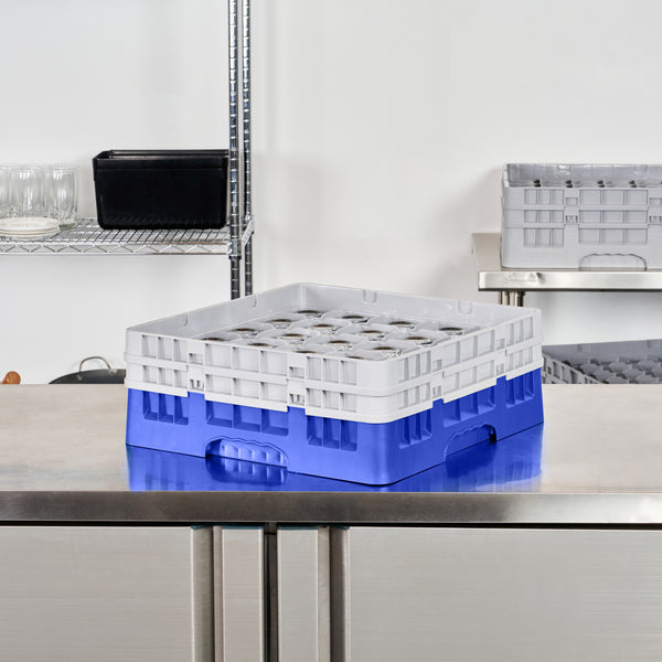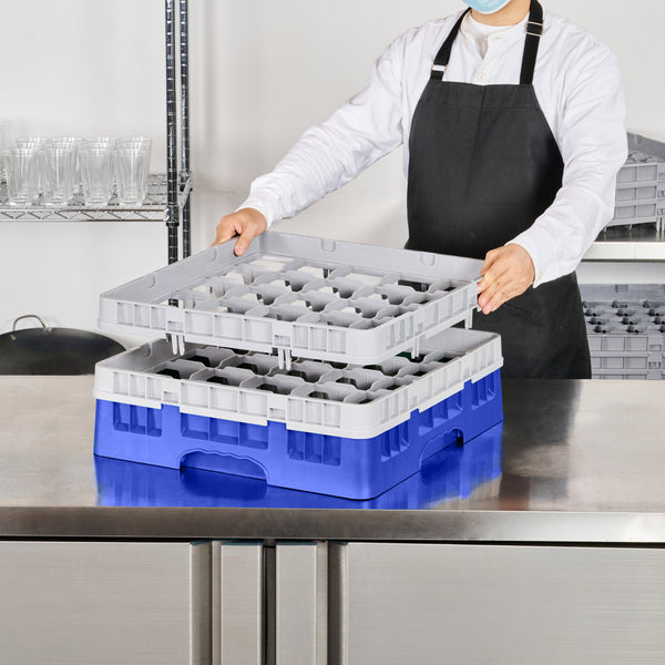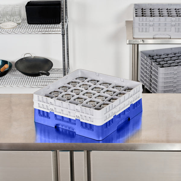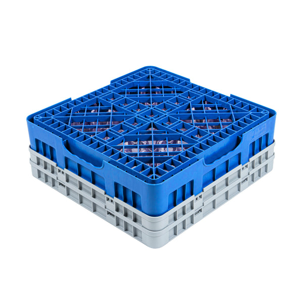 BLUE GLASS RACK - 25 COMPARTMENTS, 1 FULL AND 1 HALF DROP EXTENDER