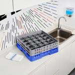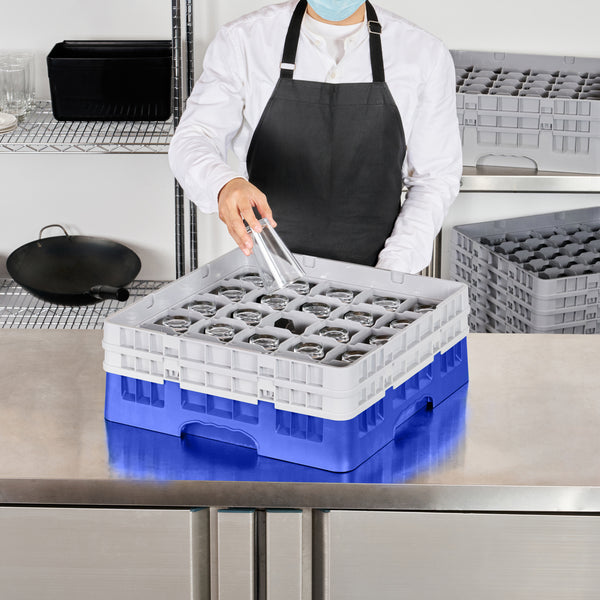 Upgrade your glassware storage system with our Clean Tek Professional Blue Glass Rack. Designed with 25 compartments, this commercial glass rack provides ample space for organizing barware efficiently. Featuring both a full drop extender and a half drop extender, this dishwasher rack accommodates various glass heights with ease. Constructed from durable PP, this compartment rack ensures long-lasting use in busy kitchens. The easy-to-handle design of this rack simplifies transport and storage operations. Open interior compartments promote thorough cleaning and drying of glassware. Solid external walls offer robust protection and stability during transit and storage. Measuring 19.69 inches in length by 19.69 inches in width by 7.24 inches in height, this barware organizer fits seamlessly into commercial dishwashing systems. Sold in a 1 count box.