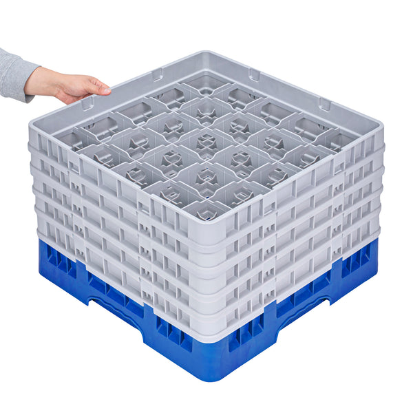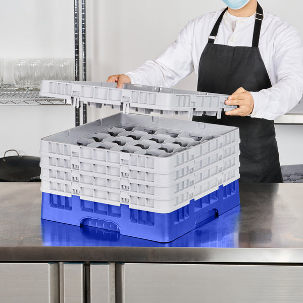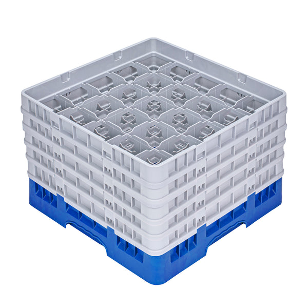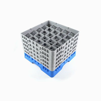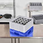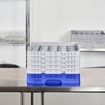 BLUE GLASS RACK - 25 COMPARTMENTS, 1 FULL AND 4 HALF DROP EXTENDERS