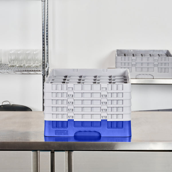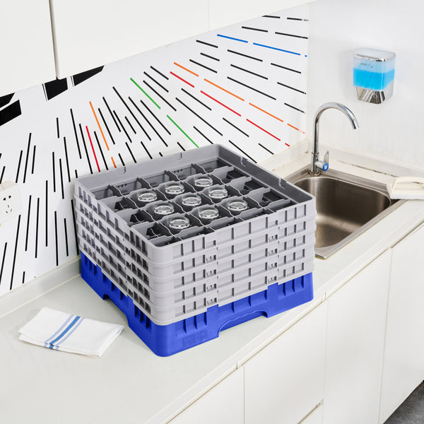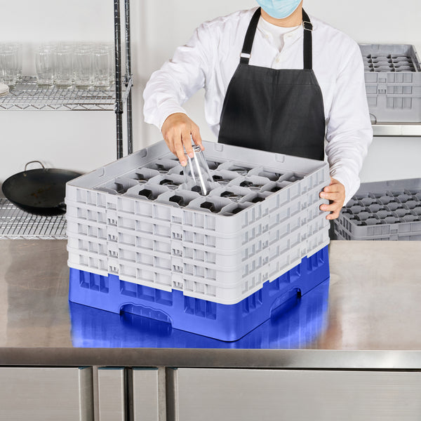 Our Clean Tek Professional Blue Glass Rack redefines glassware storage with their innovative design. This durable PP rack features 25 compartments, providing a secure dishwasher rack solution for all your glassware needs. With a full drop extender and four half drop extenders, this compartment rack effortlessly adapts to various glass sizes, ensuring optimal barware organization. The open interior compartments allow for efficient cleaning and drying, making this commercial glass rack an essential tool for busy kitchens. Solid external walls give this rack added strength and stability, protecting your valuable glassware at all times. Measuring 19.69 inches in length, 19.69 inches in width, and 12.13 inches in height, this glass rack fits seamlessly into standard cleaning equipment. Sold in a 1 count box.