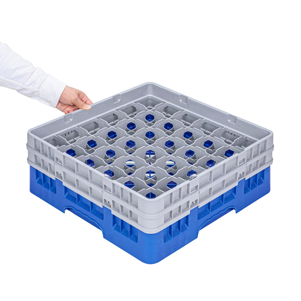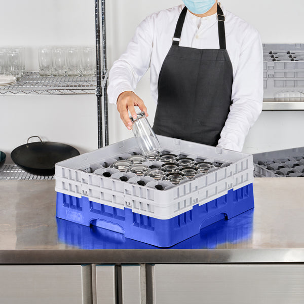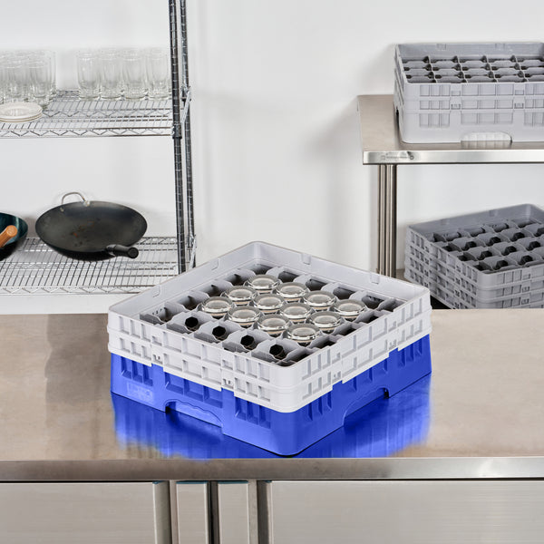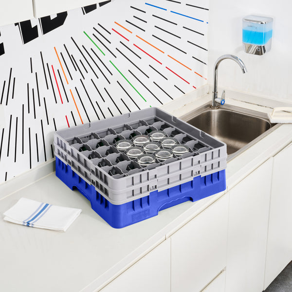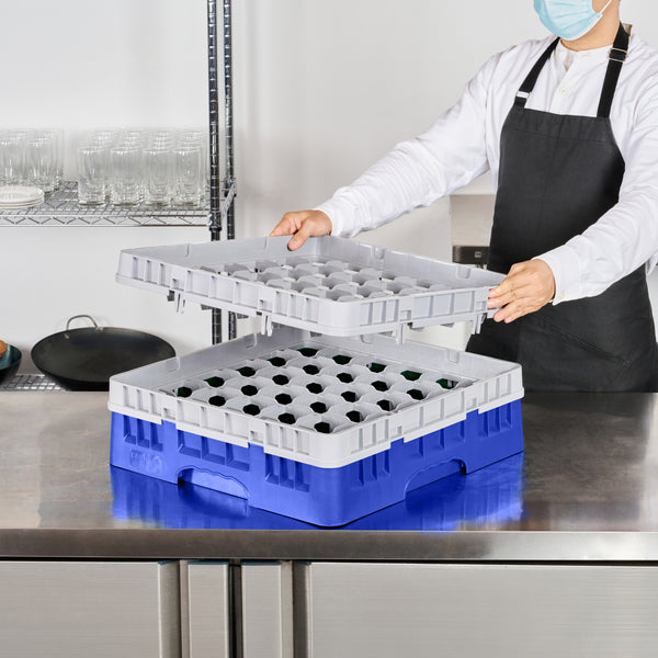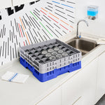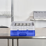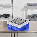 Our Clean Tek Professional Blue Glass Rack offer the ultimate in glassware storage and protection for your foodservice establishment. This dishwasher rack comes with 36 compartments, ensuring that each glass is securely held in place during washing. Featuring both a full drop extender and a half drop extender, this compartment rack adapts to various glass heights, making it a versatile barware organizer. Constructed from durable PP, this commercial glass rack withstands the rigors of daily use in a busy restaurant or bar. The easy-to-handle design of this rack simplifies loading and unloading, saving valuable time and effort. With open interior compartments, this rack allows for thorough cleaning and efficient drying. The solid external walls of this dishwasher rack provide additional protection and stability for your glassware. Measuring 19.69 inches in length by 19.69 inches in width by 7.24 inches in height, this commercial glass rack offers ample space for your glassware, ensuring each piece is safely stored. Sold in a 1 count box.