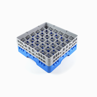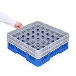 BLUE GLASS RACK - 36 COMPARTMENTS, 1 FULL AND 1 HALF DROP EXTENDER