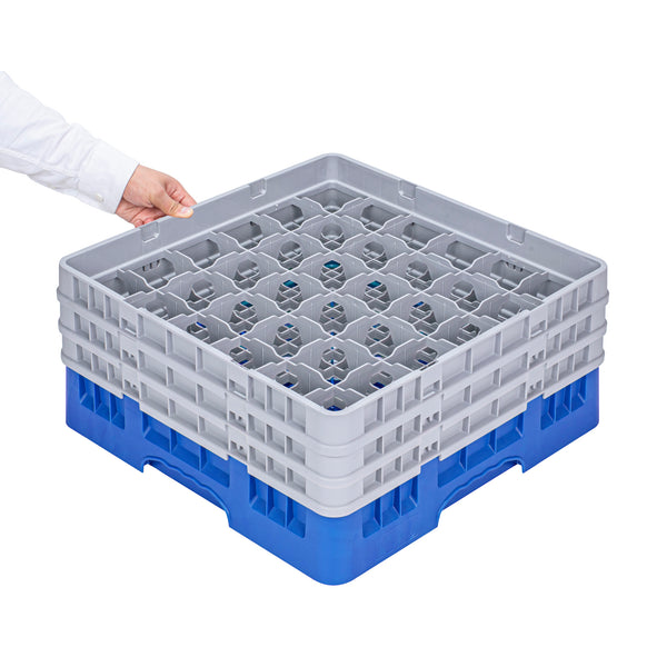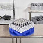BLUE GLASS RACK - 36 COMPARTMENTS, 1 FULL AND 2 HALF DROP EXTENDERS
