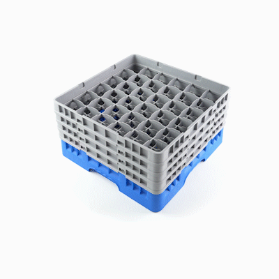 BLUE GLASS RACK - 36 COMPARTMENTS, 1 FULL AND 3 HALF DROP EXTENDERS