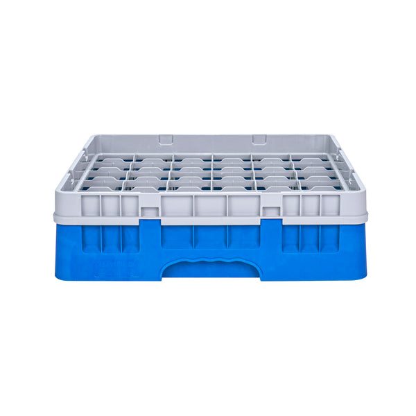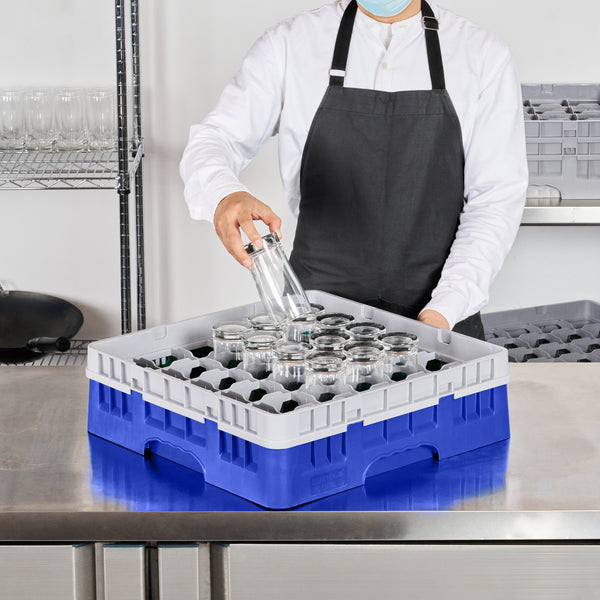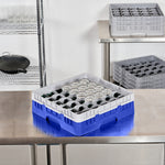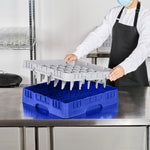Efficiently organize and protect your glassware with our Clean Tek Professional Blue Glass Rack. This glassware storage rack features 36 compartments to securely hold and separate each glass, preventing damage during transport or washing. Designed with a full drop extender, this commercial glass rack accommodates taller barware for versatile use. Crafted from durable PP, this dishwasher rack withstands the rigors of frequent use in busy foodservice settings. With an easy-to-handle design, this compartment rack streamlines the washing process, making it ideal for bartenders and kitchen staff. The open interior compartments ensure thorough cleaning and quick drying, enhancing hygiene and efficiency. Solid external walls provide additional support and stability, safeguarding your glassware. Measuring 19.69 inches in length by 19.69 inches in width by 5.63 inches in height, this barware organizer fits seamlessly into commercial dishwashers and storage areas. Sold in a 1 count box.