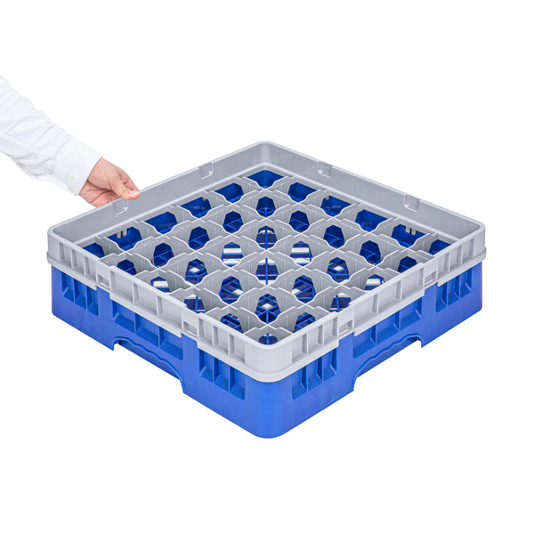 BLUE GLASS RACK - 36 COMPARTMENTS, 1 FULL DROP EXTENDER