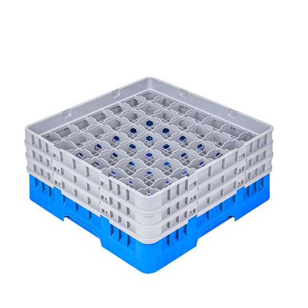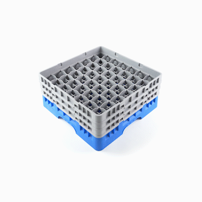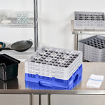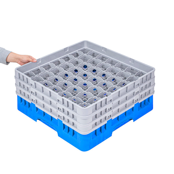 BLUE GLASS RACK - 49 COMPARTMENTS, 1 FULL AND 2 HALF DROP EXTENDERS