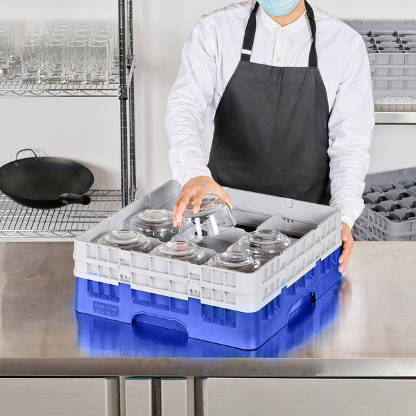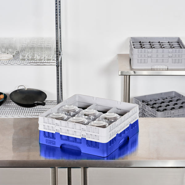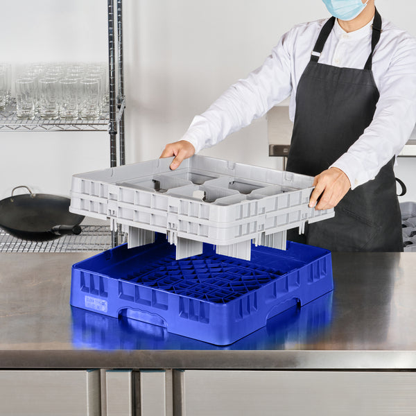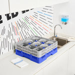 Efficiently organize and protect your barware with our Clean Tek Professional Blue Glass Rack. This commercial glass rack features 9 compartments, making glassware storage a breeze. Designed with a durable PP construction, this dishwasher rack withstands the rigors of daily use in busy commercial kitchens. For added convenience, this compartment rack includes 1 full drop extender and 1 half drop extender, providing flexibility to accommodate various glass sizes. The open interior compartments ensure proper air circulation and effective drying of glassware. With solid external walls, this barware organizer prevents breakage and keeps your glassware secure. The easy-to-handle design of this commercial glass rack simplifies transportation and storage. Measuring 19.69 inches in length by 19.69 inches in width by 7.24 inches in height, this dishwasher rack offers ample space for all your glassware needs. Sold in a 1 count box.