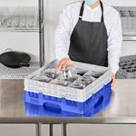 BLUE GLASS RACK - 9 COMPARTMENTS, 1 FULL AND 1 HALF DROP EXTENDER