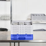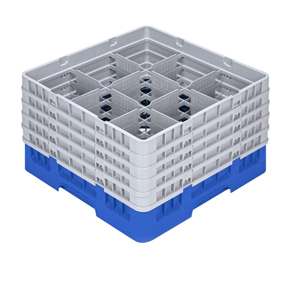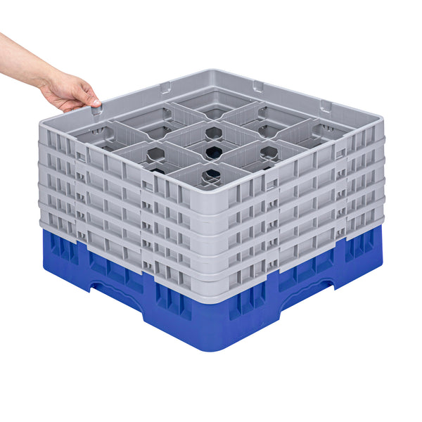 BLUE GLASS RACK - 9 COMPARTMENTS, 1 FULL AND 4 HALF DROP EXTENDERS