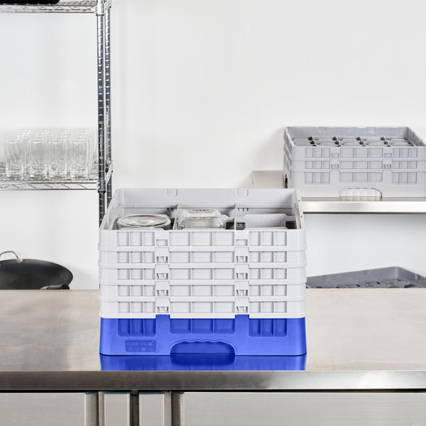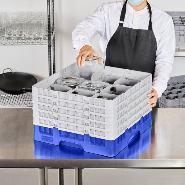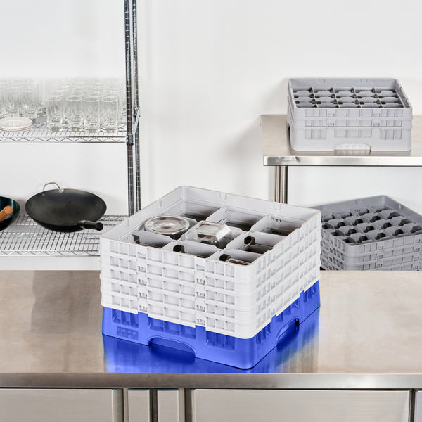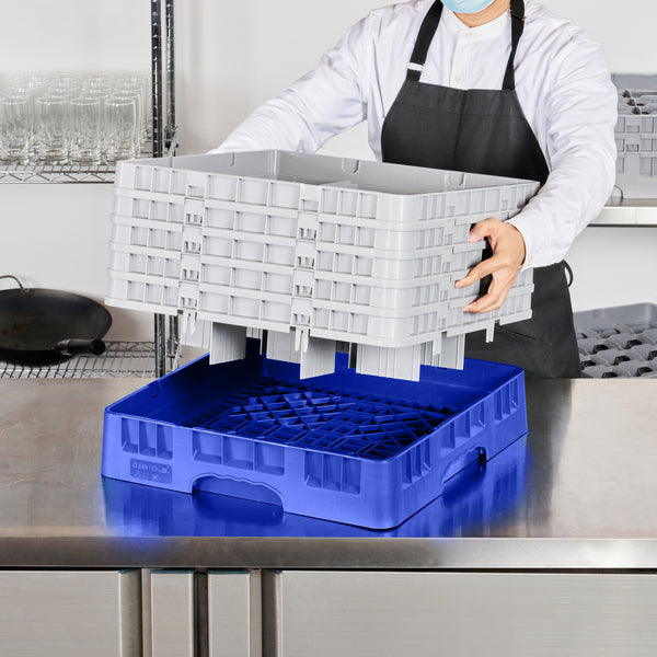 Optimize your glassware storage with our Clean Tek Professional Blue Glass Rack. Featuring 9 compartments, this commercial glass rack provides ample space to organize your barware efficiently. Equipped with 1 full drop extender and 4 half drop extenders, this dishwasher rack ensures flexibility and versatility for all your glassware needs. Constructed from durable PP, this compartment rack is built to withstand the demands of a busy kitchen. The easy-to-handle design of this glass rack simplifies the process of loading and unloading glassware. With open interior compartments, this barware organizer allows for thorough cleaning and quick drying. Solid external walls offer added protection to prevent any accidental breakage of delicate items. Measuring 19.69 inches in length by 19.69 inches in width by 12.13 inches in height, this glass rack fits seamlessly into any commercial kitchen layout. Sold in a 1 count box.