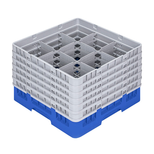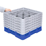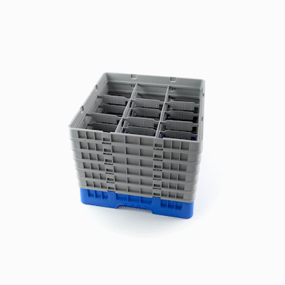 BLUE GLASS RACK - 9 COMPARTMENTS, 1 FULL AND 5 HALF DROP EXTENDERS
