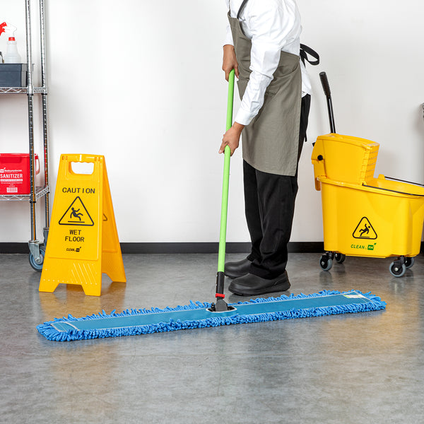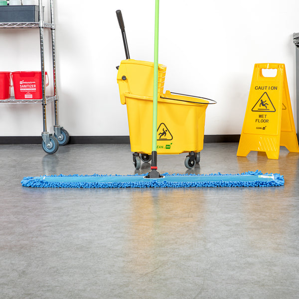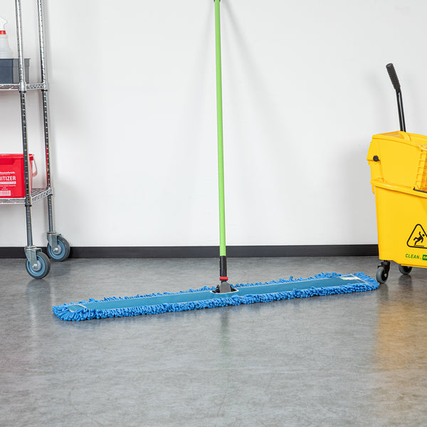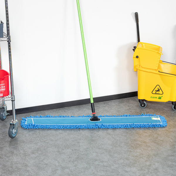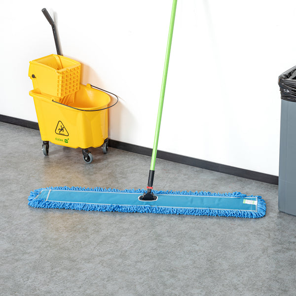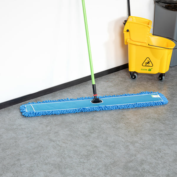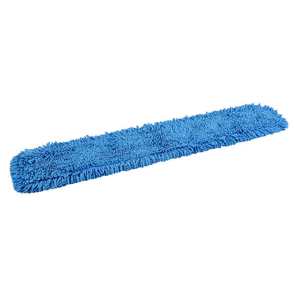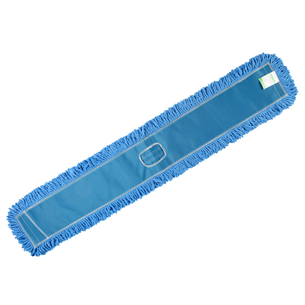 Effortlessly maintain clean floors with our Clean Tek Professional Blue Microfiber Dust / Dry Mop Head. The looped end design of this blue mop head minimizes potential fraying, enhancing durability and prolonging its lifespan for extended use. Pair this industrial dust mop with our collection of matching Clean Tek Professional mop frames and handles for an all-in-one cleaning solution that ensures an exceptional cleaning experience. Made from premium microfiber, this dust mop head efficiently whisks away and retains dust and dirt, enabling you to clean floors faster and more effectively. The secure attachment style ensures that this microfiber mop head stays in place during use, providing a hassle-free cleaning session. Additionally, this mop head is machine washable and reusable, offering easy maintenance and long-lasting performance with every clean. Measuring 48.03 inches in length by 5 inches in width, this mop head replacement is perfectly sized for extensive commercial or industrial cleaning tasks. Sold in a 1 count box. Mop frame and handle are available and sold separately.
