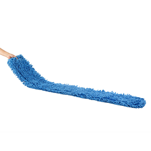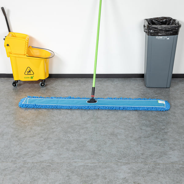 Upgrade your cleaning routine with our Clean Tek Professional Blue Microfiber Dust / Dry Mop Head. With a looped end design, this mop head replacement prevents unraveling, ensuring long-lasting use and reliable performance during cleaning tasks. This microfiber mop head pairs seamlessly with our collection of matching Clean Tek Professional mop frames and handles for an all-in-one cleaning solution that ensures an excellent cleaning experience. Made from premium microfiber, this dust mop head effortlessly whisks away and retains dust and dirt, allowing you to clean your floors faster. The secure attachment style of this blue mop head ensures it stays in place during use. Machine washable and reusable, this industrial dust mop head offers easy maintenance. Measuring 59.84 inches in length by 5 inches in width, this mop head fits perfectly in various cleaning scenarios. Sold in a 1 count box. Mop frame and handle are available and sold separately.