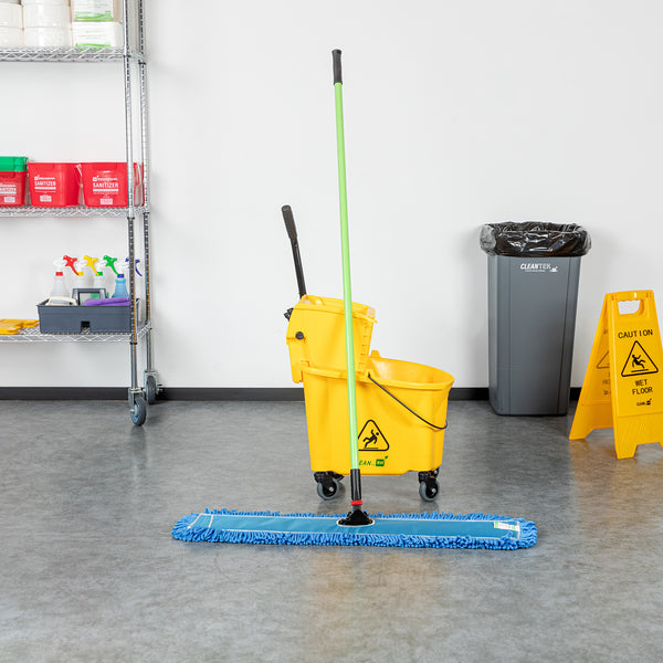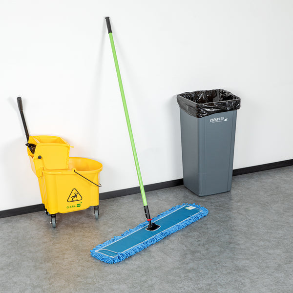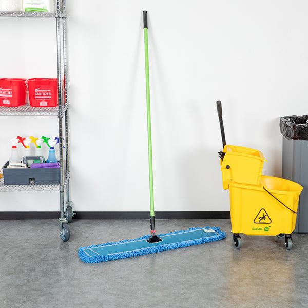 Effortlessly maintain pristine floors in your establishment with our Clean Tek Professional Blue Microfiber Dust / Dry Mop. Designed to tackle hard-to-reach areas, this set includes a dusting mop head, handle, and sturdy iron frame for a comprehensive cleaning solution. This dry mop is made from microfiber and efficiently capture dust and fine particles, making it ideal for keeping your floors immaculate while ensuring durability across various surfaces. Created to withstand frequent use, this floor dust mop's iron frame will not bend or warp, ensuring long-lasting performance. The 64-inch handle of this dust mop extends your reach, enabling you to clean large areas and tricky spots without the hassle of bending or stretching. The microfiber mop head of this commercial dust mop is machine washable and reusable, offering consistent performance with every clean. Measuring 35.83 inches in length by 5 inches in width by 64.96 inches in height, this floor duster is perfectly sized for efficient use in any commercial space. Sold in a 1 count box.