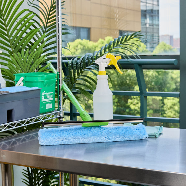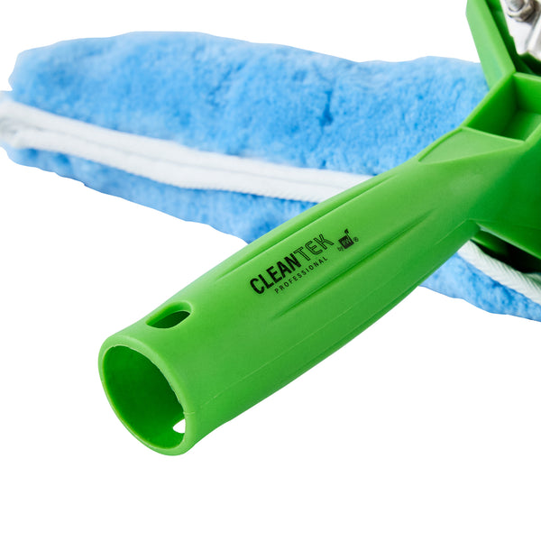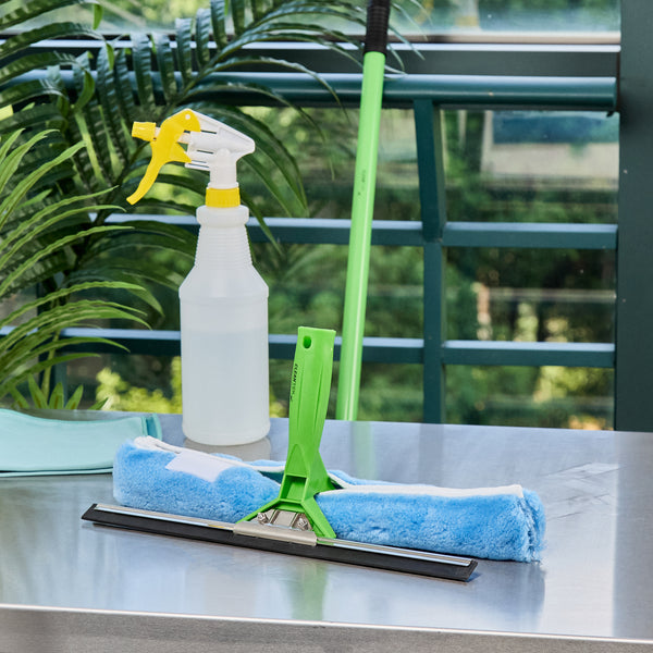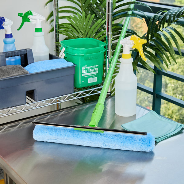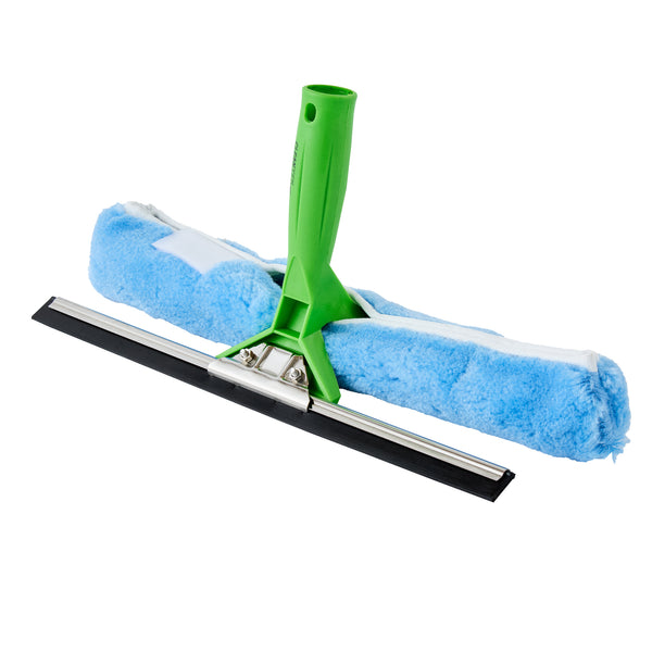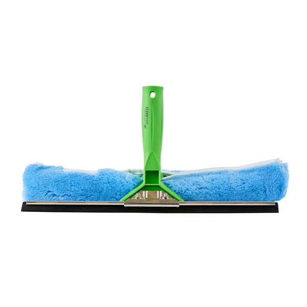 Efficiently clean glass surfaces with our Clean Tek Professional Blue Synthetic Window Squeegee. This 2-in-1 tool features a squeegee on one side and a cloth on the other, offering versatile cleaning solutions for both removing water and wiping down surfaces. Each car squeegee includes a T-bar handle that provides a comfortable grip and optimal control, making it easy to maneuver and clean large glass surfaces efficiently. Pair it with our telescopic handles (SKU: RWT1773G) for extended reach and versatility. The rubber blade of this commercial floor squeegee ensures a no-streak cleaning experience by effectively removing water and residue from glass surfaces. This window squeegee comes with a plush and woven synthetic fabric, making it gentle and strong, perfect for tackling tough everyday tasks. For effortless cleaning and maintenance, the cloth scrubber of this window washer is removable and machine washable for long-lasting use. Measuring 14.96 inches in length by 7.48 inches in width by 3.54 inches in height, this outdoor window cleaner is designed for versatile use. Sold in a box with 1 squeegee, 1 window washer sleeve, and 1 T-bar handle.