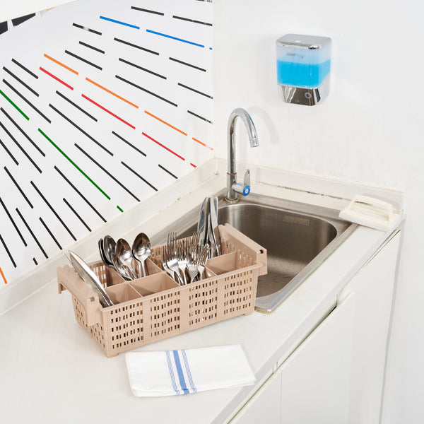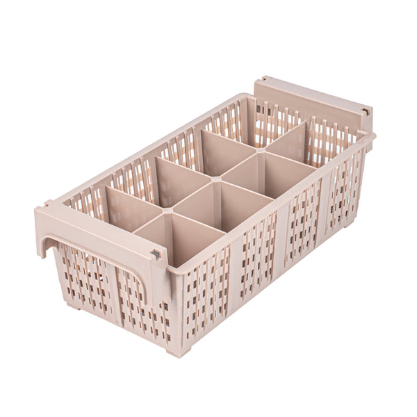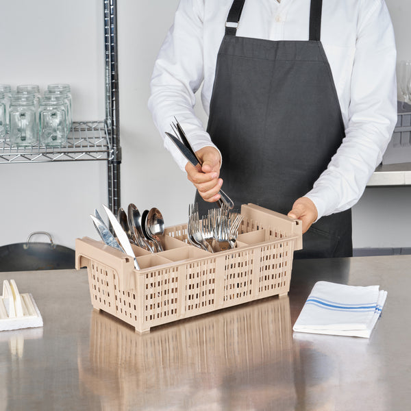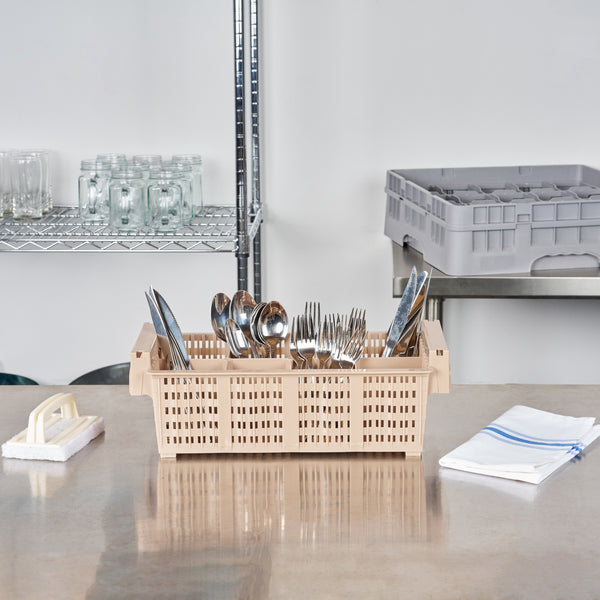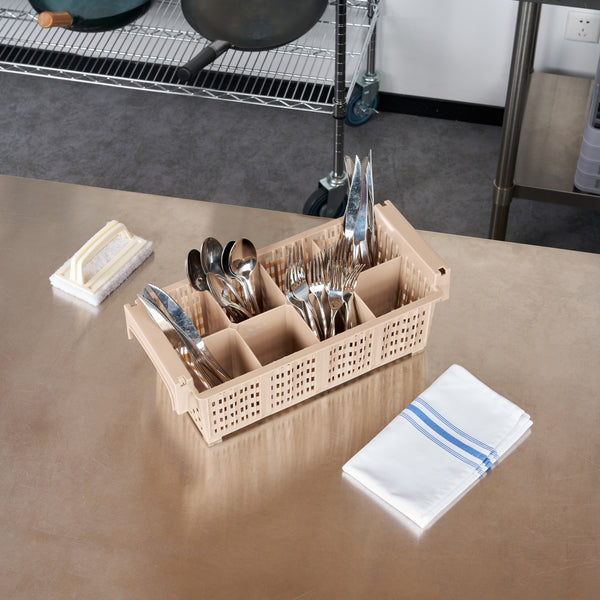 Enhance your kitchen's efficiency with our Clean Tek Professional Brown Flatware Rack, designed for durability and seamless operation. This flatware rack is crafted from premium plastic, ensuring it withstands daily use for long-lasting performance. Featuring 8 compartments, this commercial dish rack efficiently organizes and secures utensils for thorough cleaning, allowing every piece of flatware to sparkle. The solid external walls of this plastic drying rack provide robust protection during transport and storage. With an easy-to-handle design, this restaurant dishwasher rack offers a practical choice for quick and safe loading and unloading. Measuring 16.54 inches in length by 8.27 inches in width by 5.71 inches in height, this plastic rack fits perfectly into any kitchen setup. Sold in a 1 count box.