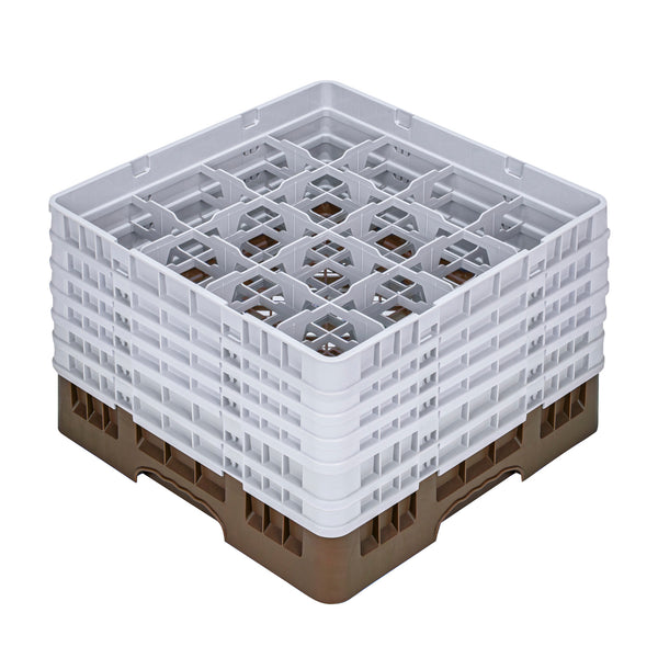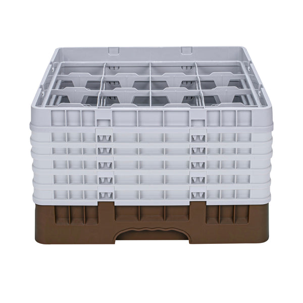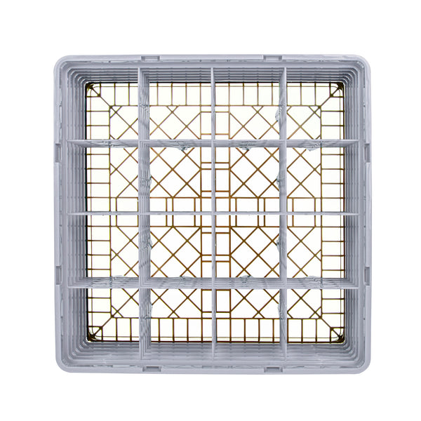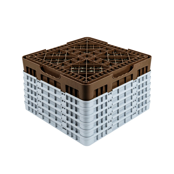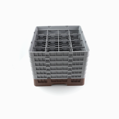 BROWN GLASS RACK - 16 COMPARTMENTS, 1 FULL AND 5 HALF DROP EXTENDERS