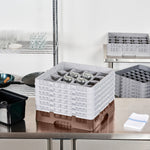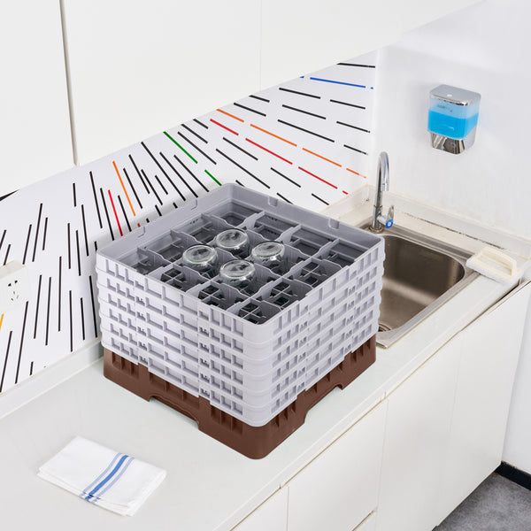 Enhance your glassware storage solutions with our Clean Tek Professional Brown Glass Rack. Designed with 16 compartments, this dishwasher rack ensures your glassware stays organized and protected. Featuring one full drop extender, this compartment rack accommodates various glass sizes for versatile storage. Equipped with five half drop extenders, this barware organizer maximizes space and efficiency in your kitchen. Crafted from durable PP, this commercial glass rack withstands the rigors of daily use in busy foodservice settings. The easy-to-handle design of this glass rack simplifies transportation and handling. Open interior compartments allow for thorough cleaning and drying, making this glass rack ideal for maintaining hygiene standards. Solid external walls provide added protection, ensuring your glassware remains secure and intact. Measuring 19.69 inches in length by 19.69 inches in width by 13.74 inches in height, this glass rack offers ample storage space while fitting seamlessly into your kitchen layout. Sold in a 1 count box.