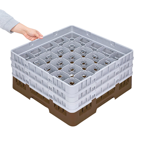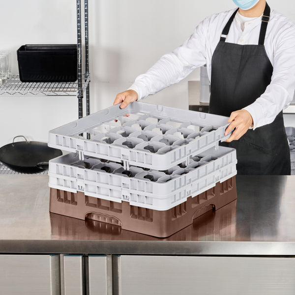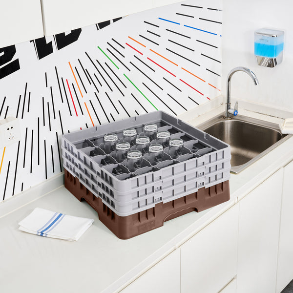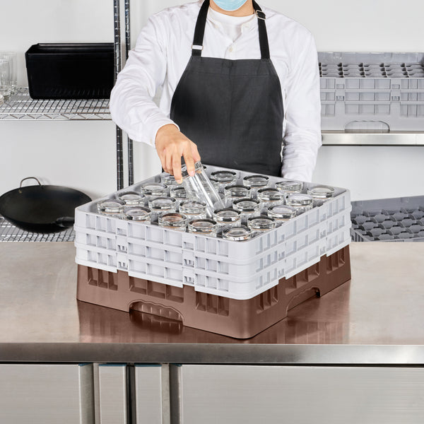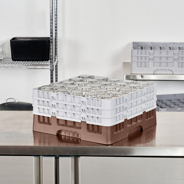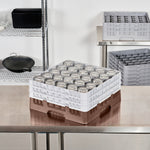 Ensure your glassware is always pristine with our Clean Tek Professional Brown Glass Rack. This glassware storage rack features 25 compartments, providing ample space for organizing glassware efficiently. Designed with a full drop extender, this dishwasher rack accommodates taller items with ease. For added flexibility, this glass rack includes two half drop extenders, making it a versatile barware organizer. Constructed from durable PP, this commercial glass rack is built to withstand the demands of a busy foodservice environment. The easy-to-handle design of this compartment rack simplifies transportation and handling. Featuring open interior compartments, this glass rack allows for thorough cleaning and quick drying of glassware. Solid external walls provide additional protection, ensuring your glassware remains secure during washing and storage. Measuring 19.69 inches in length by 19.69 inches in width by 8.86 inches in height, this glassware storage solution fits seamlessly into commercial dishwashers. Sold in a 1 count box.