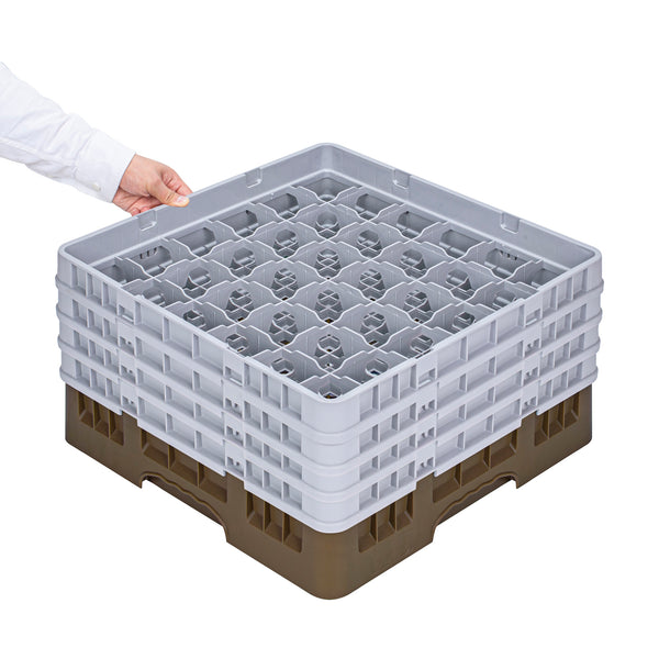 BROWN GLASS RACK - 36 COMPARTMENTS, 1 FULL AND 3 HALF DROP EXTENDERS