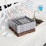 Optimize your glassware storage with our Clean Tek Professional Brown Glass Rack. Featuring 36 compartments, this commercial glass rack provides ample space for organizing barware efficiently. Constructed with durable PP, this dishwasher rack ensures long-lasting use in demanding settings. Designed with a full drop extender and three half drop extenders, this compartment rack offers versatile storage solutions for various glass sizes. The easy-to-handle design of this glass rack makes transporting and loading a breeze. With open interior compartments, this barware organizer allows for quick drying and easy cleaning. Solid external walls provide extra protection for your delicate glassware during transport and storage. Measuring 19.69 inches in length by 19.69 inches in width by 10.51 inches in height, this commercial glass rack is perfect for any foodservice establishment. Sold in a 1 count box.