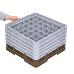 BROWN GLASS RACK - 36 COMPARTMENTS, 1 FULL AND 4 HALF DROP EXTENDERS