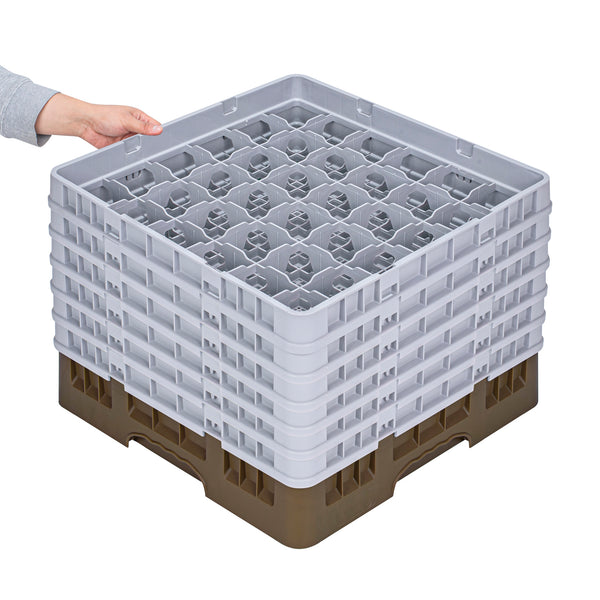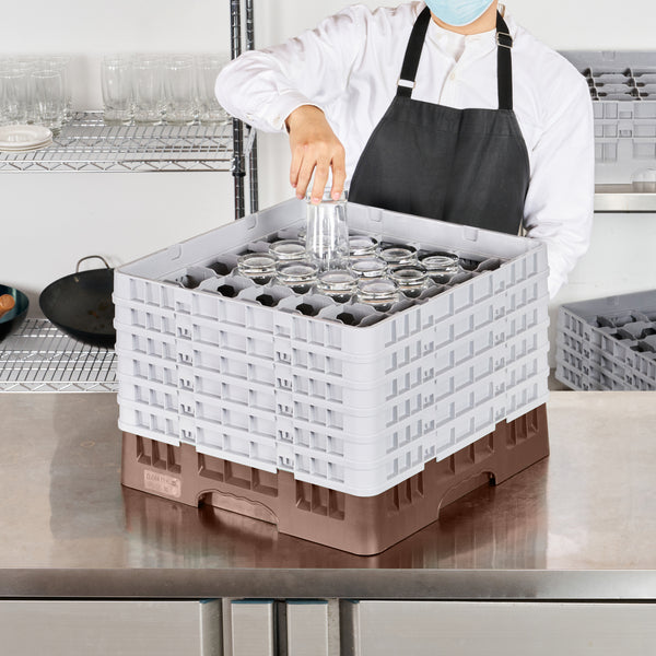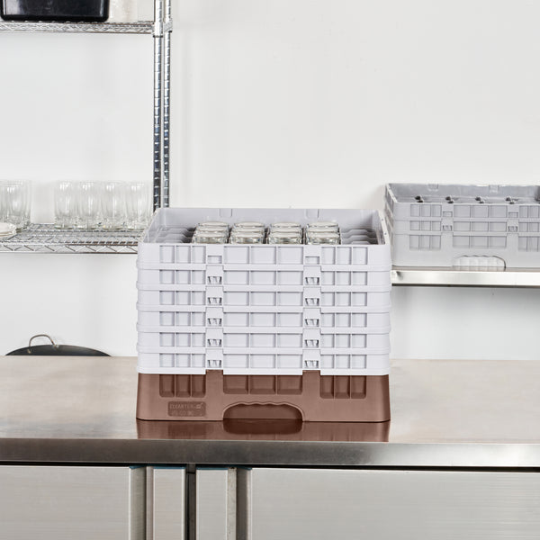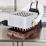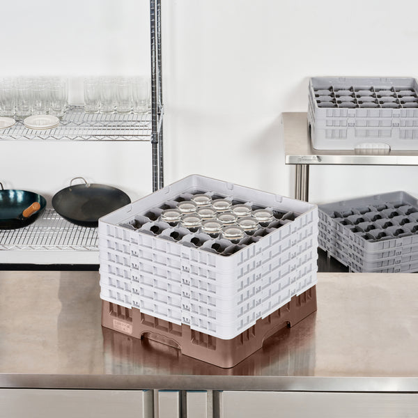 Our Clean Tek Professional Brown Glass Rack provides the ultimate glassware storage solution for any foodservice establishment. Designed with 36 compartments, this compartment rack ensures each piece of glassware is securely held in place. This glass rack comes equipped with a full drop extender and five half drop extenders to easily accommodate various glass sizes. Featuring durable PP construction, this dishwasher rack withstands the rigors of commercial use. The easy-to-handle design of this barware organizer simplifies transport and storage, making it a must-have for busy bars and restaurants. With open interior compartments, this commercial glass rack promotes efficient drying and sanitation. Meanwhile, solid external walls offer robust protection to keep your glassware safe. Measuring 19.69 inches in length by 19.69 inches in width by 13.74 inches in height, this glass rack is perfectly sized for optimal space utilization. Sold in a 1 count box.