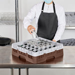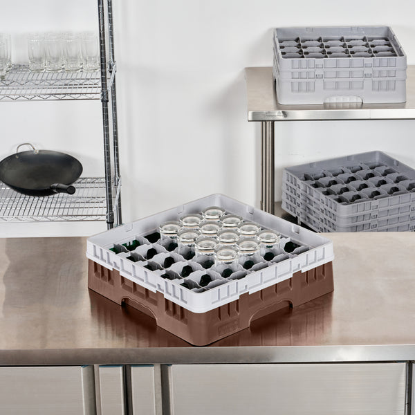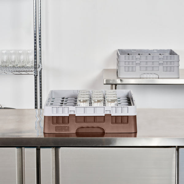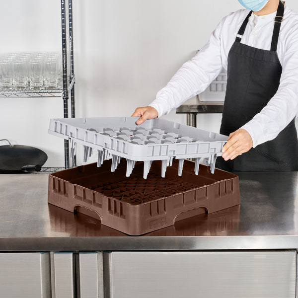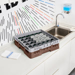 Upgrade your glassware storage with our Clean Tek Professional Brown Glass Rack, designed to streamline your kitchen or bar operations. Featuring 36 compartments, this dishwasher rack ensures each piece of glassware is securely held, reducing the risk of breakage. The sturdy 1 full drop extender allows for versatile stacking, making this compartment rack suitable for various glass sizes. Constructed from durable PP material, this rack ensures long-lasting use and reliability in commercial settings. Easy-to-handle design enhances efficiency, enabling staff to transport barware organizers with ease. The open interior compartments facilitate quick drying and sanitation, while the solid external walls provide extra protection during storage and transport. This commercial glass rack measures 19.69 inches in length by 19.69 inches in width by 5.63 inches in height, fitting seamlessly into most standard dishwashers. Sold in a 1 count box.