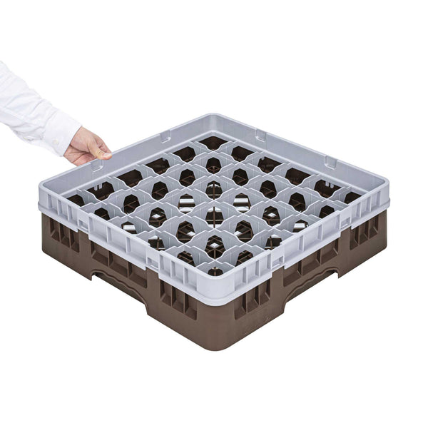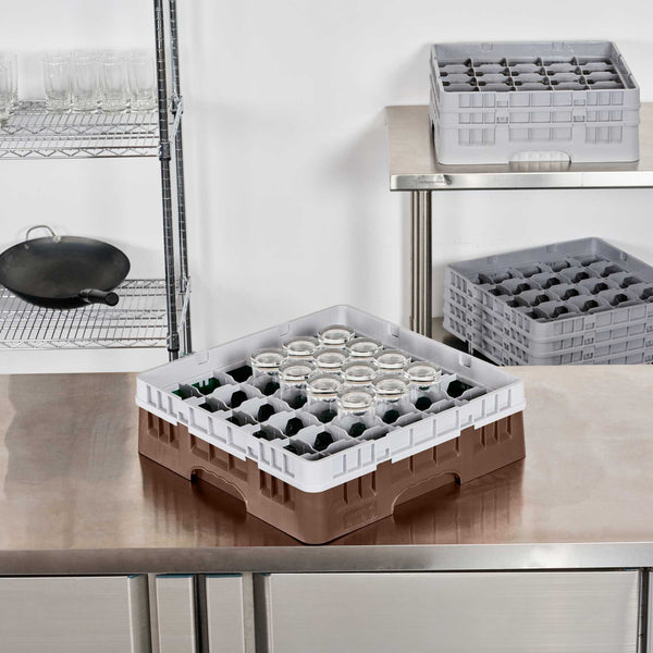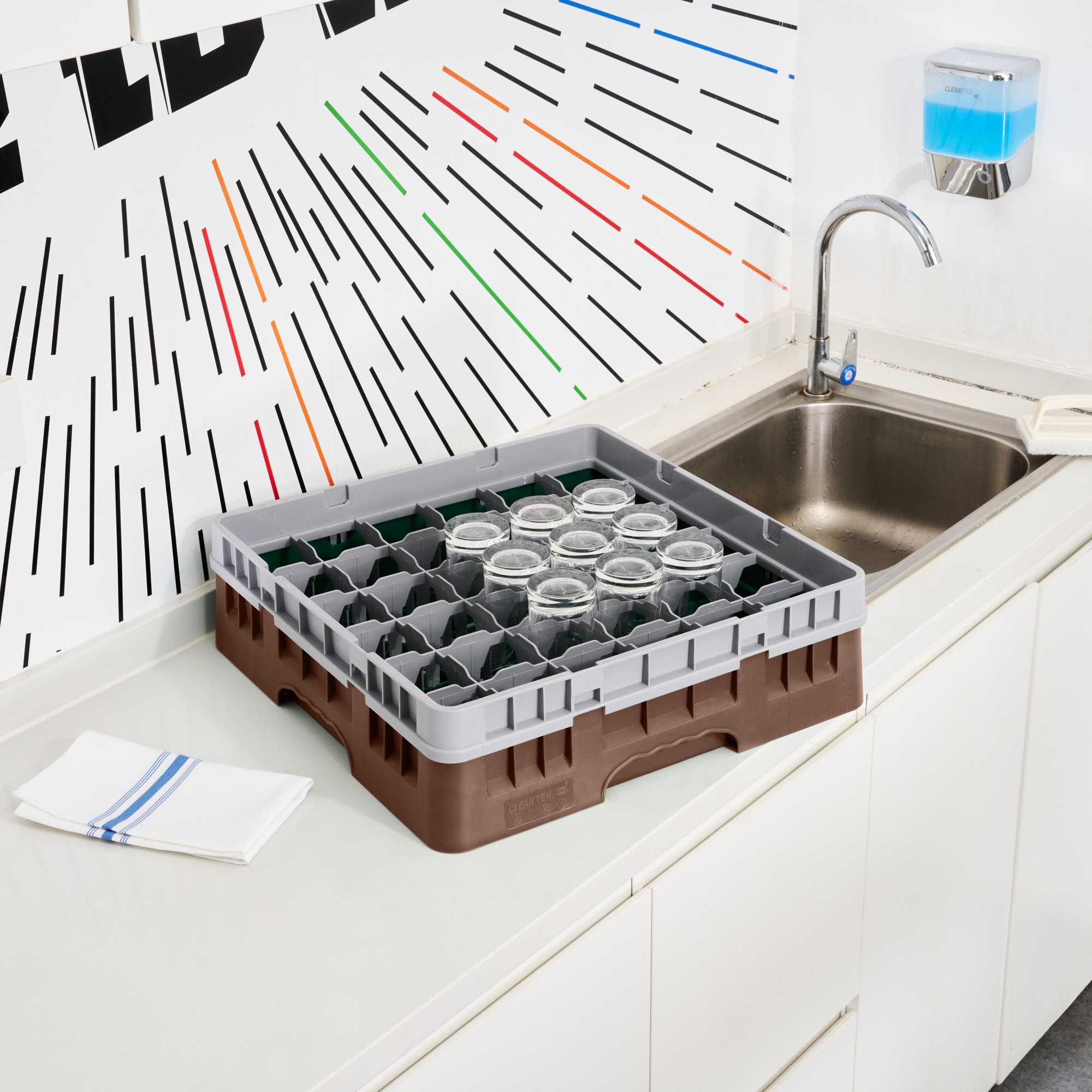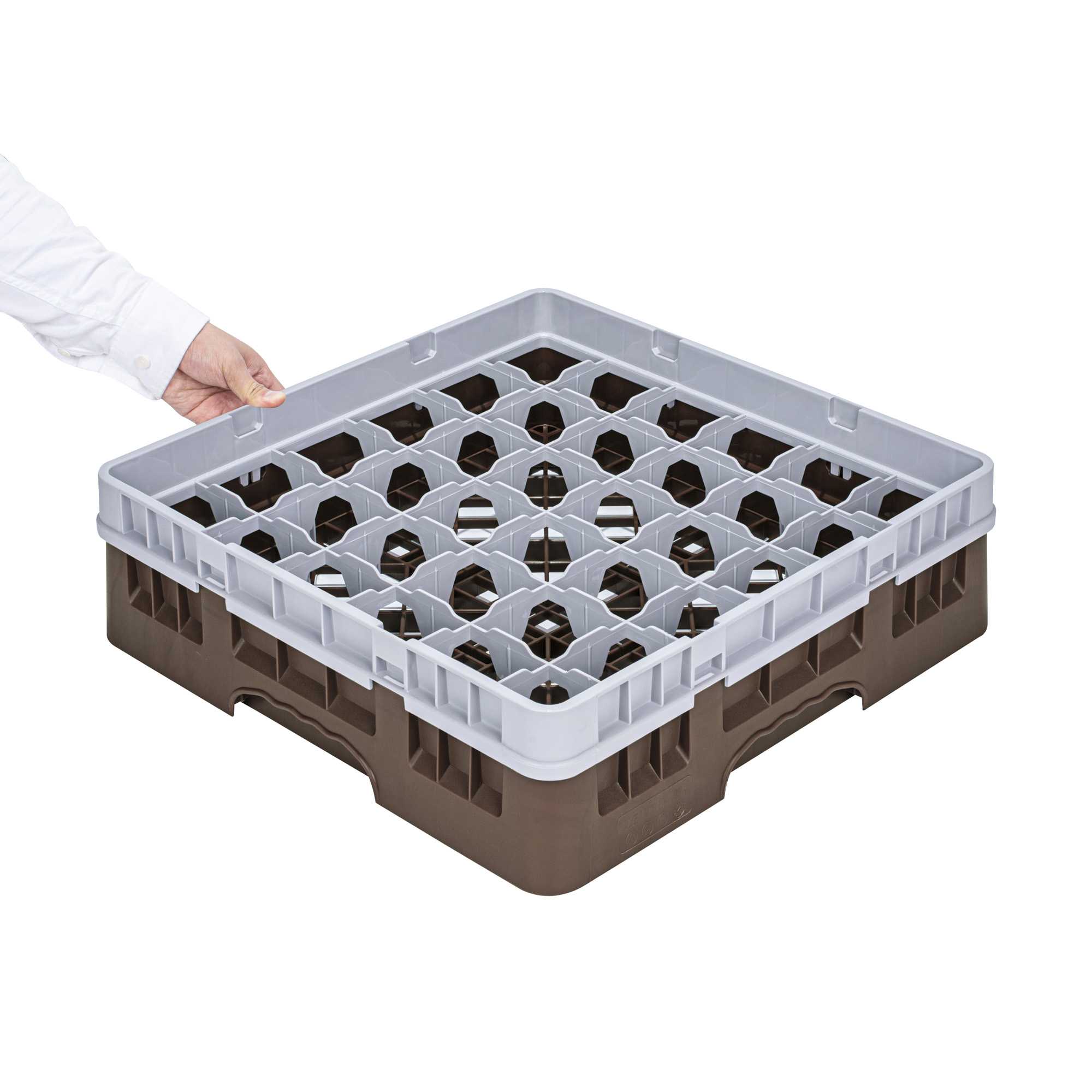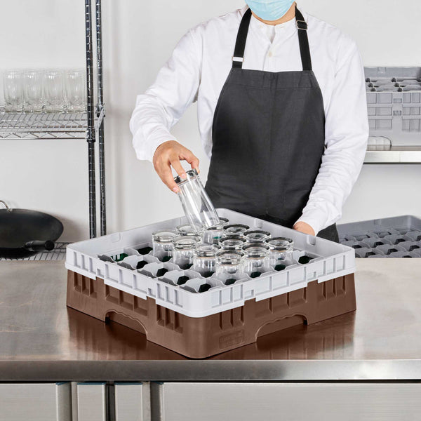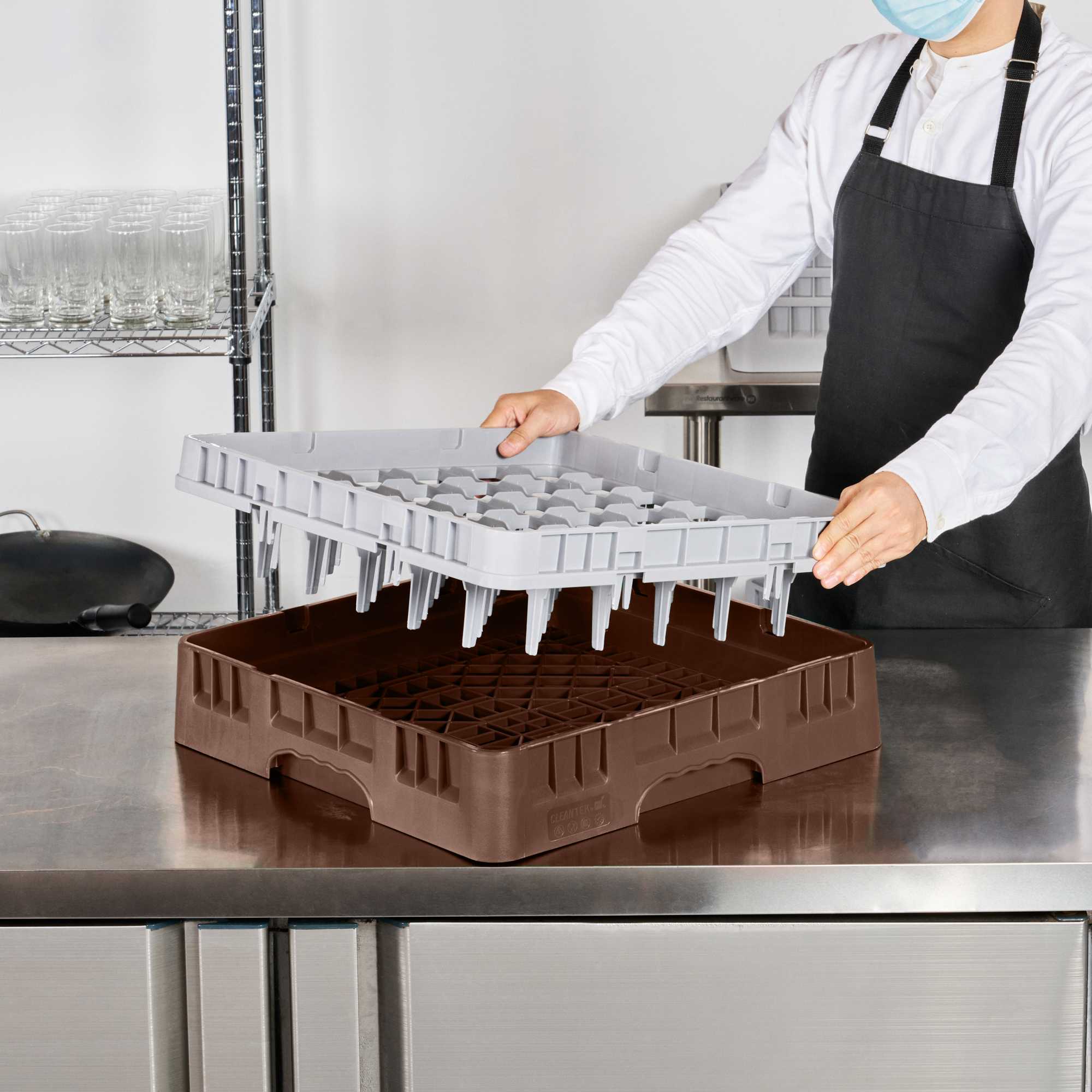 Upgrade your glassware storage with our Clean Tek Professional Brown Glass Rack, designed to streamline your kitchen or bar operations. Featuring 36 compartments, this dishwasher rack ensures each piece of glassware is securely held, reducing the risk of breakage. The sturdy 1 full drop extender allows for versatile stacking, making this compartment rack suitable for various glass sizes. Constructed from durable PP material, this rack ensures long-lasting use and reliability in commercial settings. Easy-to-handle design enhances efficiency, enabling staff to transport barware organizers with ease. The open interior compartments facilitate quick drying and sanitation, while the solid external walls provide extra protection during storage and transport. This commercial glass rack measures 19.69 inches in length by 19.69 inches in width by 5.63 inches in height, fitting seamlessly into most standard dishwashers. Sold in a 10 count box.