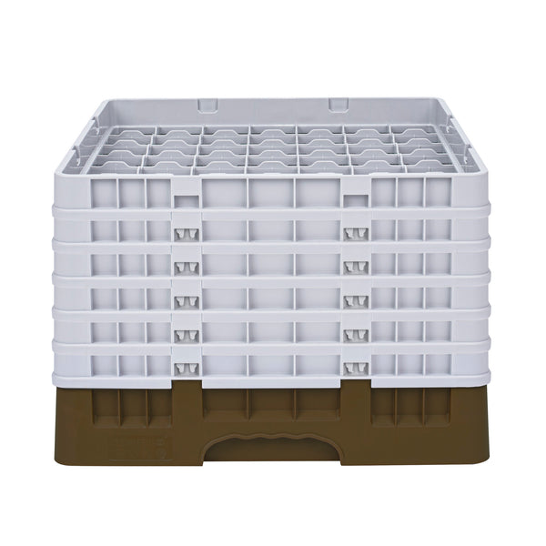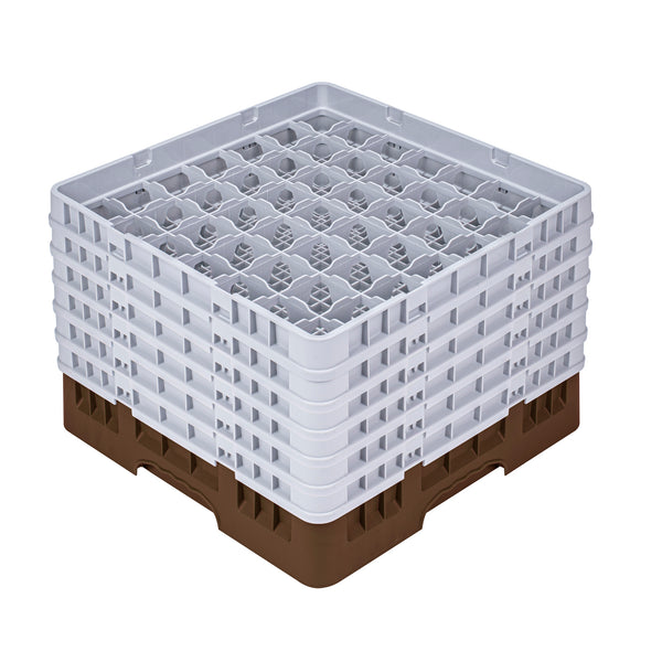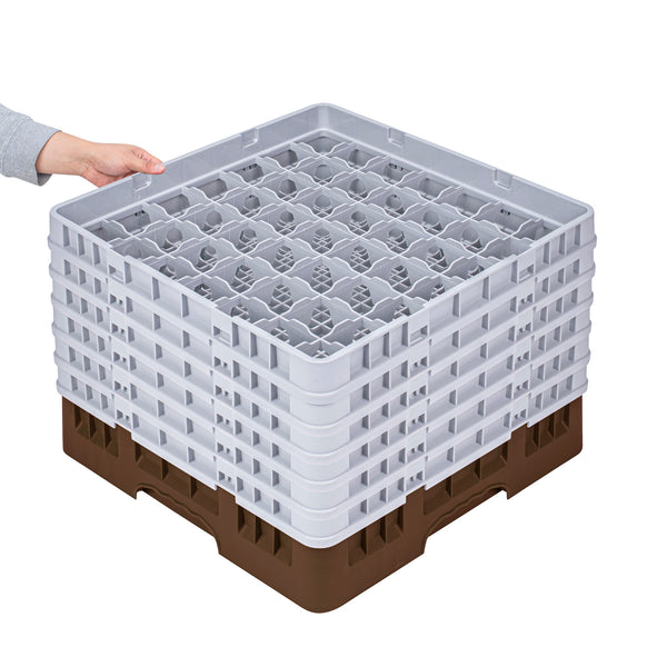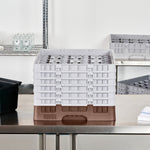 Optimize your glassware storage with our Clean Tek Professional Brown Glass Rack, designed to meet the demands of busy foodservice settings. Featuring 49 compartments, this commercial glass rack ensures each piece of glassware is securely held in place. With a 1 full drop extender, this dishwasher rack accommodate taller glassware effortlessly. The 5 half drop extenders provide flexibility, making this compartment rack highly versatile for different types of barware. Constructed from durable PP, this rack is built to withstand daily use in commercial kitchens. An easy-to-handle design makes transporting and loading this barware organizer simple and efficient. The open interior compartments facilitate thorough cleaning while allowing quick drying. Solid external walls provide additional protection during transport and storage, ensuring your glassware remains intact. Measuring 19.69 inches in length by 19.69 inches in width by 13.74 inches in height, this commercial glass rack fits seamlessly into standard dishwashers. Sold in a 1 count box.