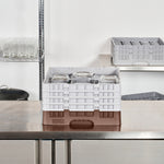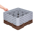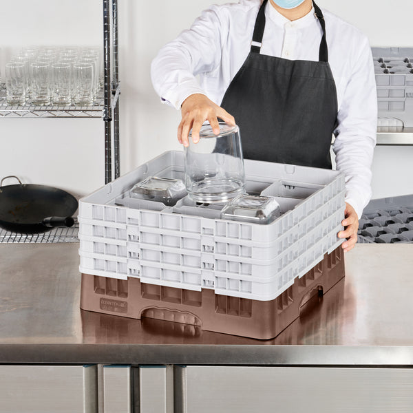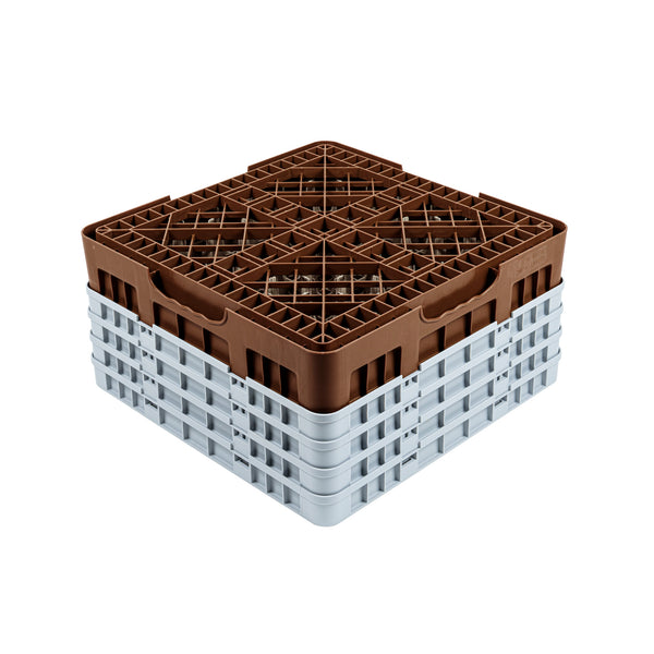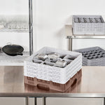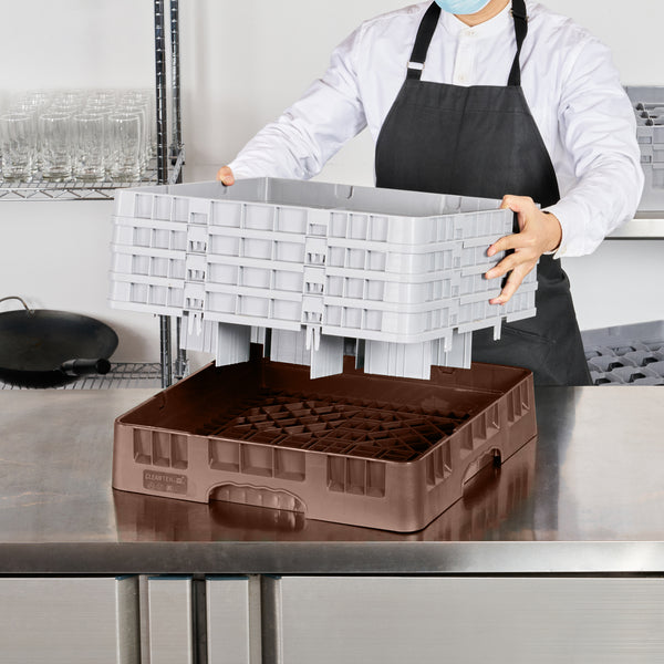 Maximize your glassware storage efficiency with our Clean Tek Professional Brown Glass Rack. Designed with 9 open interior compartments, this rack provides an organized solution for your commercial glassware needs. Featuring a durable PP construction, this dishwasher rack withstands the demands of a busy foodservice environment. The innovative full drop extender enhances the versatility of this compartment rack, allowing for secure handling and storage. With 3 half drop extenders, this barware organizer adapts to various glass sizes, ensuring secure transportation and washing. The solid external walls of this glass rack offer added protection, making this commercial glass rack ideal for any bar or restaurant setting. Measuring 19.69 inches in length by 19.69 inches in width by 10.51 inches in height, this glass rack efficiently utilizes space while maintaining accessibility. Sold in a 1 count box.