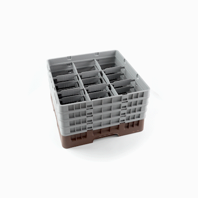 BROWN GLASS RACK - 9 COMPARTMENTS, 1 FULL AND 3 HALF DROP EXTENDERS