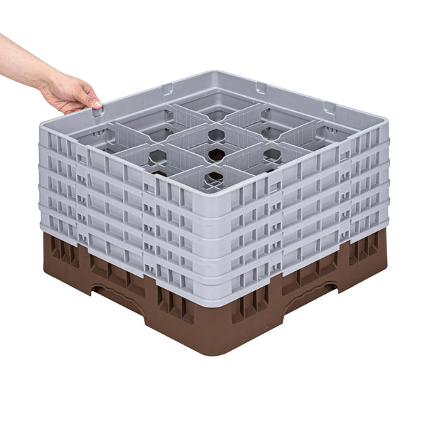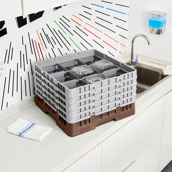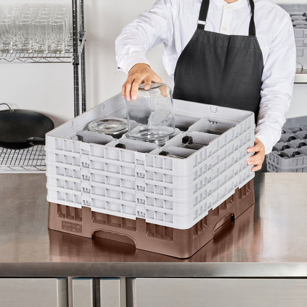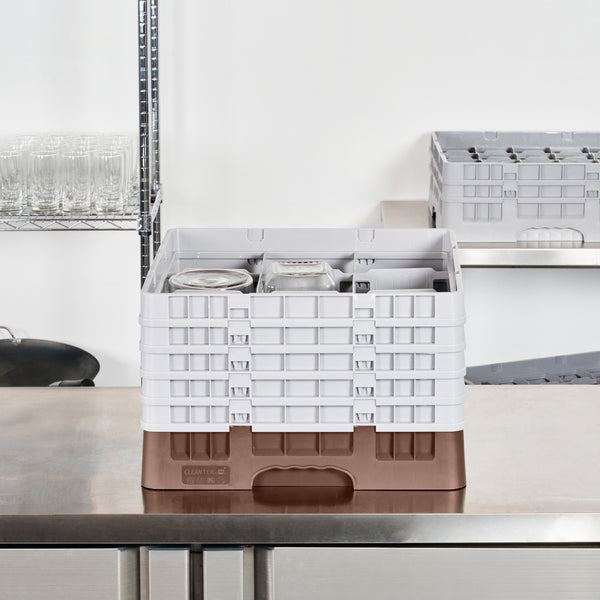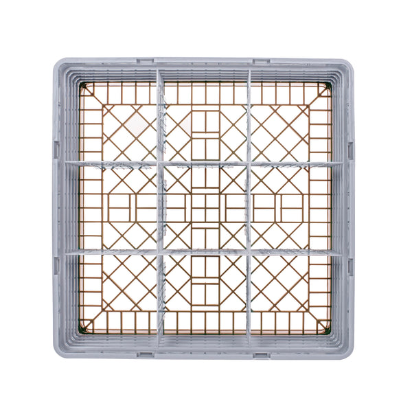 Optimize your glassware storage with our Clean Tek Professional Brown Glass Rack. Designed with 9 compartments, this commercial glass rack ensures your glassware stays organized and protected. Featuring a full drop extender, this dishwasher rack is perfect for accommodating taller glass items. To customize your barware storage, this compartment rack includes 4 half drop extenders. Constructed from durable PP, this glass rack is built to withstand the demands of busy kitchens and bars. This commercial glass rack's easy-to-handle design simplifies the loading and unloading process. With open interior compartments, this barware organizer allows for efficient air circulation and drying. Solid external walls provide extra durability and protection for your valuable glassware. Measuring 19.69 inches in length by 19.69 inches in width by 12.13 inches in height, this glass rack offers ample storage space while fitting seamlessly into your dishwasher. Sold in a 1 count box.