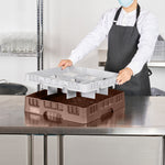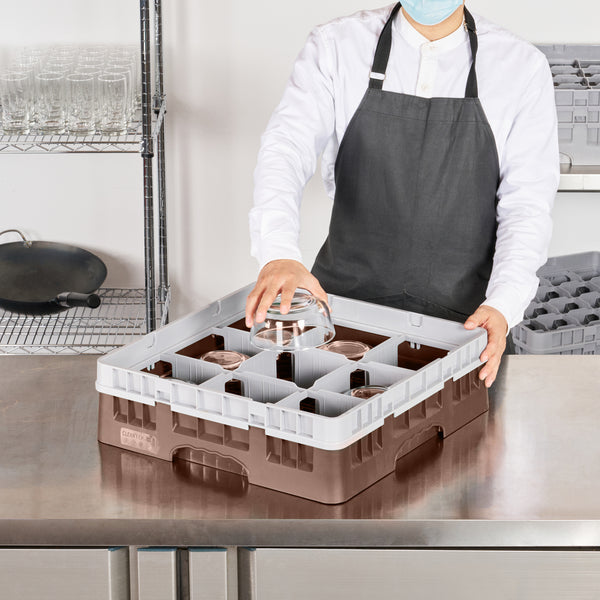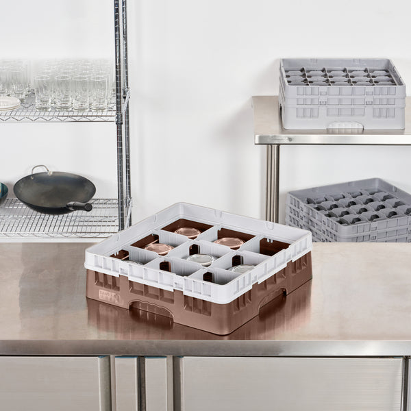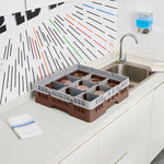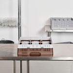 Our Clean Tek Professional Brown Glass Rack revolutionizes glassware storage for your commercial kitchen or bar. This dishwasher rack features open interior compartments for enhanced cleaning, ensuring your glasses come out spotless every time. With the ability to hold up to 9 glasses, this compartment rack optimizes space and organization in your kitchen. The solid external walls of this barware organizer provide excellent protection during washing and storage. Each rack includes a full drop extender, allowing for flexibility and additional height as needed. Made of durable polypropylene, this commercial glass rack guarantees long-lasting use and resilience. The easy-to-handle design of this rack simplifies transportation. Measuring 19.69 inches in length by 19.69 inches in width by 5.63 inches in height, this glassware storage solution fits seamlessly into your existing setup. Sold in a 1 count box.