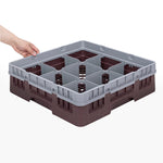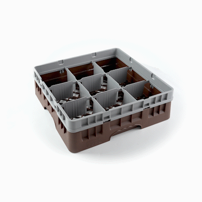 BROWN GLASS RACK - 9 COMPARTMENTS, 1 FULL DROP EXTENDER