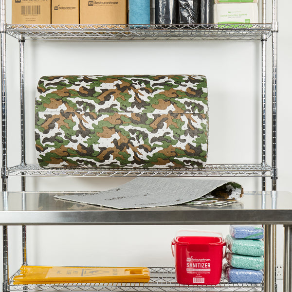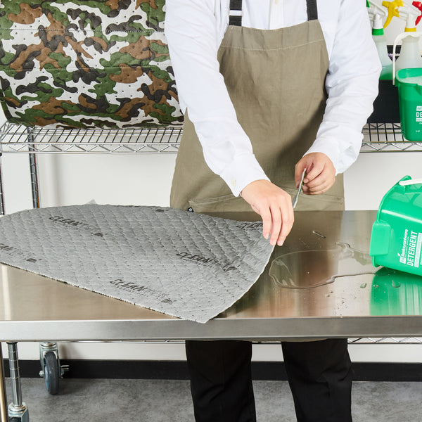 Effortlessly manage spills and maintain safety in busy environments. Clean Tek Professional Absorbent Nonwoven Mats feature a dimpled design that quickly absorbs liquids, significantly reducing slip hazards in industrial kitchens and warehouses. This absorbent mat boasts perforations that allow for easy tearing, ensuring precise use and minimizing waste, making it an efficient choice for foodservice operations. Crafted from universal sorbent material, it effectively absorbs oils, coolants, solvents, and water, enhancing safety as an oil spill mat. With a camouflage pattern that expertly hides stains and spills, these mats maintain a clean appearance even in high-traffic areas, proving to be an ideal industrial spill mat. Measuring 1801.18 inches in length and 29.92 inches in width, these mats cover extensive areas, reducing the need for multiple mats and streamlining operations. Each order includes 1 Clean Tek Professional Absorbent Nonwoven Mats.