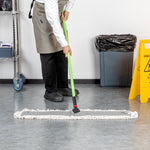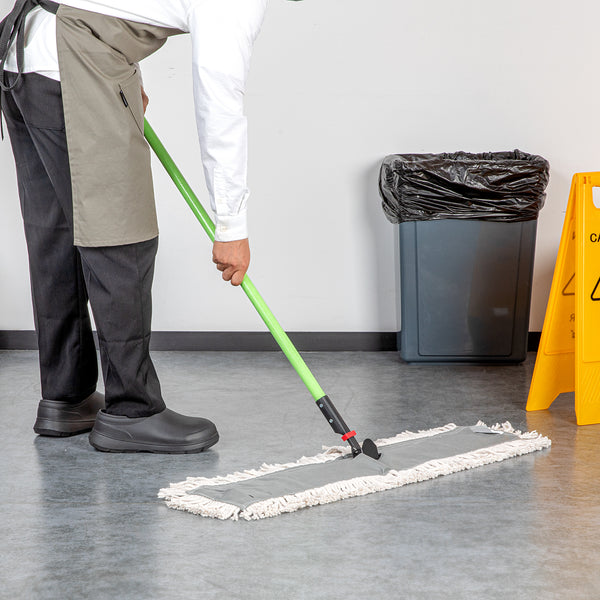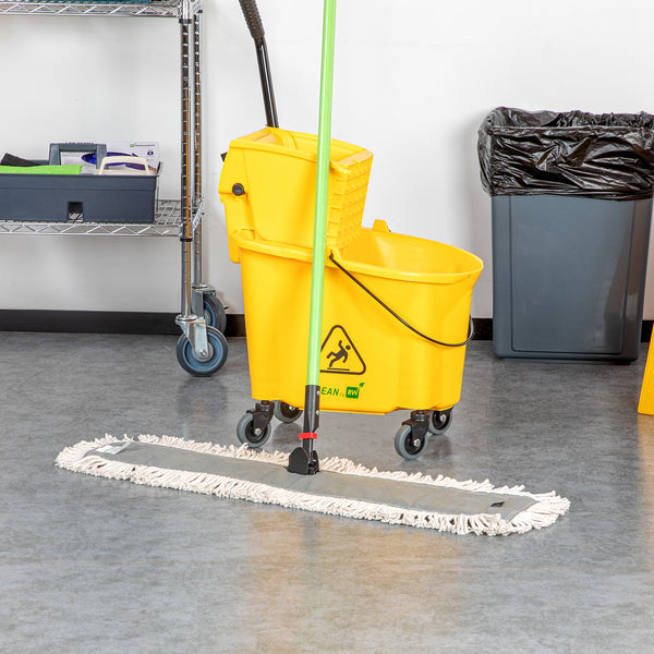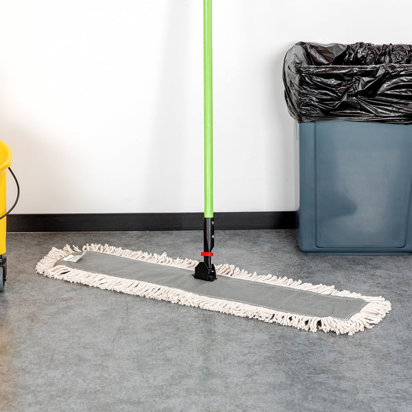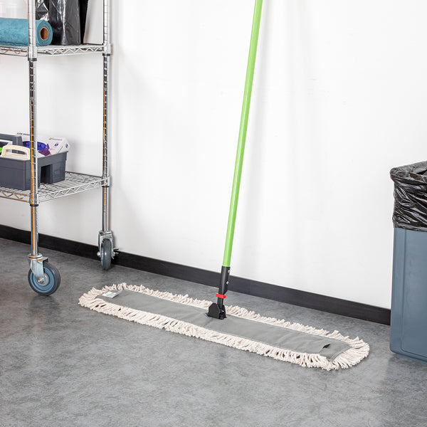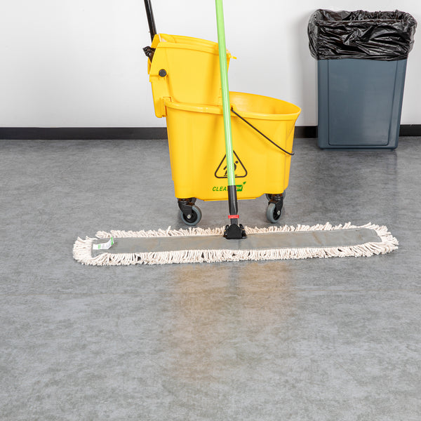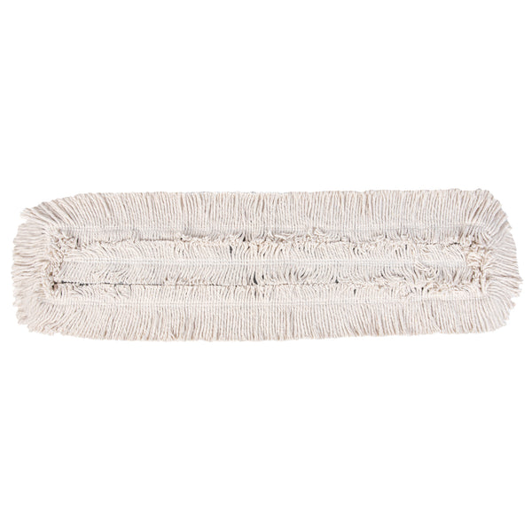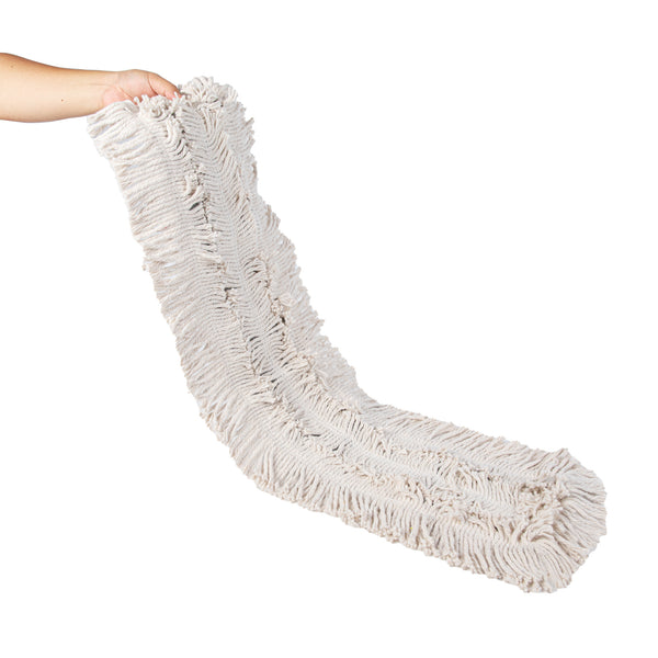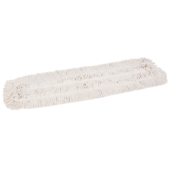 Enhance your cleaning routine with our Clean Tek Professional Cotton Dry Dust Mop Head. Pair this cotton mop head with our collection of matching Clean Tek Professional mop frames and handles for an all-in-one cleaning solution that ensures an excellent cleaning experience. Made from premium cotton, this dust mop head easily whisks away and retains dust and dirt, so you can clean your floors faster. The secure attachment style of this wide dust mop head ensures it stays in place while you clean, providing a hassle-free experience. This commercial dust mop head is disposable, allowing you to discard it after use without the need for proper storage or washing. Measuring 35.83 inches in length by 5 inches in width, this dry mop head is suitable for various floor sizes. Sold in a 1 count box. Mop frame and handle are available and sold separately.