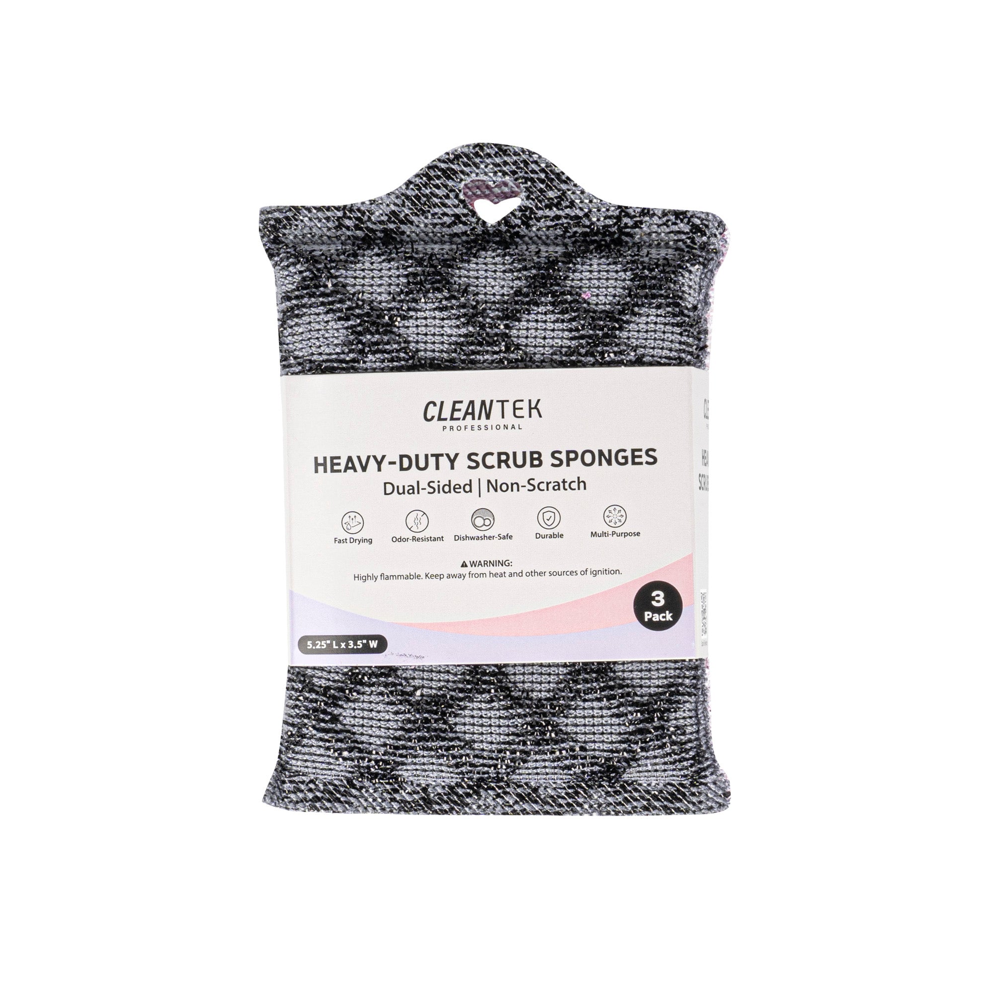 Effortlessly tackle tough stains with our innovative cleaning sponge. The Clean Tek Professional Absorbent Cleaning Sponge is designed with a soft, elastic inner core that excels in water absorption, providing efficient cleaning for busy kitchens. Constructed with wood fibers, this dishwashing sponge resists oil stains, making maintenance a breeze and saving valuable time for restaurant staff. Featuring a convenient hanging hole design, this scrub sponge reduces bacteria growth after use, ensuring a hygienic environment. Measuring 5.32 inches in length, this sponge is crafted from durable plastic, offering a comfortable grip and long-lasting performance. Elevate your cleaning routine with this versatile tool, perfect for any commercial kitchen. Each order includes 60 Clean Tek Professional Absorbent Cleaning Sponges.