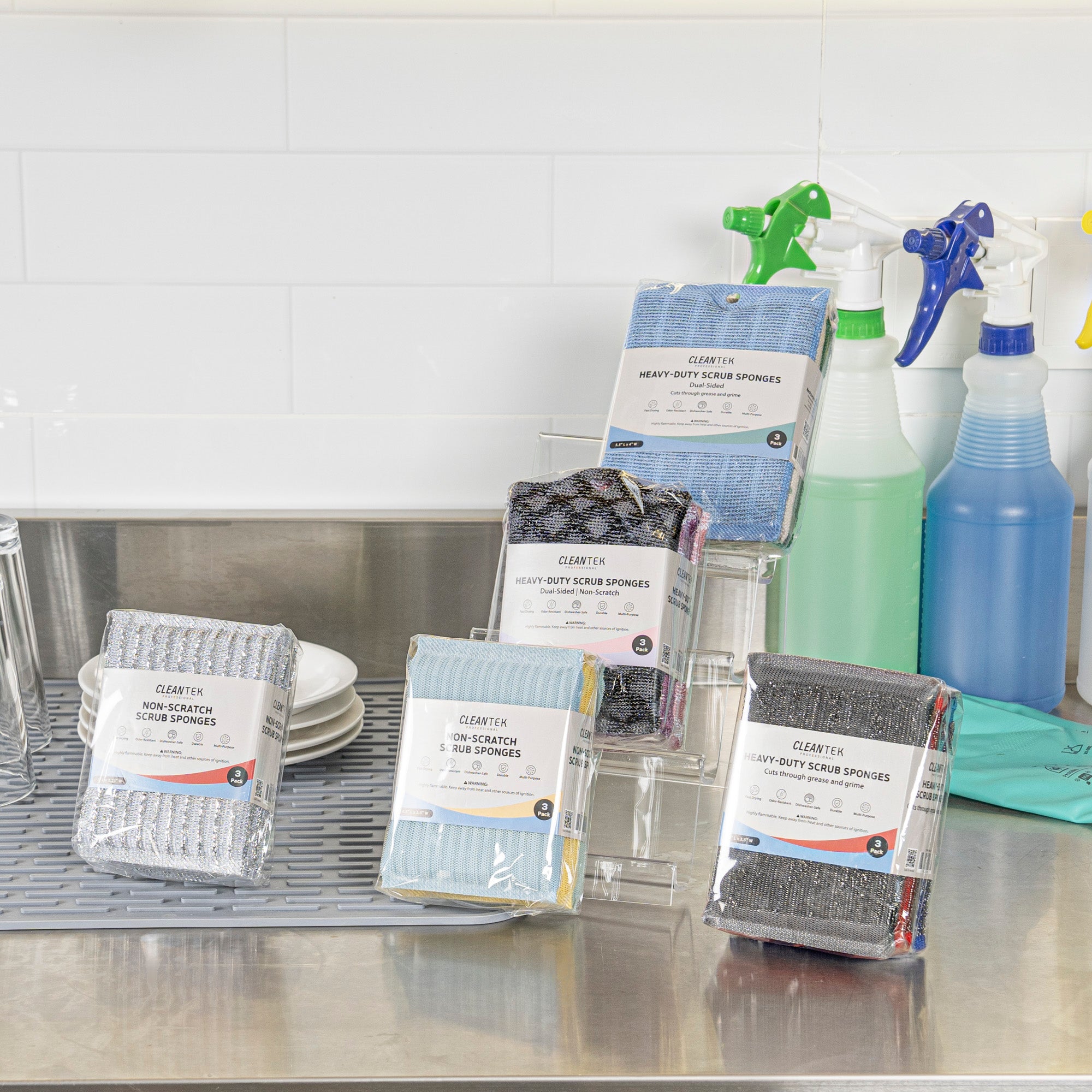 DUAL-SIDED MULTI-PURPOSE ASSORTED SCRUB SPONGE - DIAMOND PATTERN