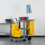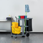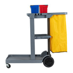 GRAY 3-SHELF JANITOR CART - 18 GAL BAG, 4 BUCKETS